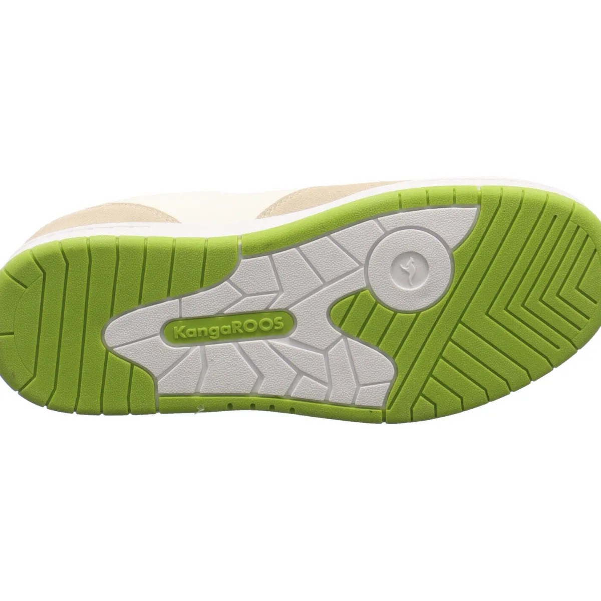 Das Obermaterial aus einem tollen Mix aus Textil und Kunstleder, erscheint im Retro Look mit einer tollen Farbkombination aus Beige, Grün und Weiß. Die Zunge und der Schaft sind super weich gepolstert und mit der Schnürung kann er optimal an den Fuß angepasst werden. Die Innensohle ist als Wechselfußbett gearbeitet und dank der Roos Fit Größenkennzeichnung, kannst du die optimale Größe herausfinden.