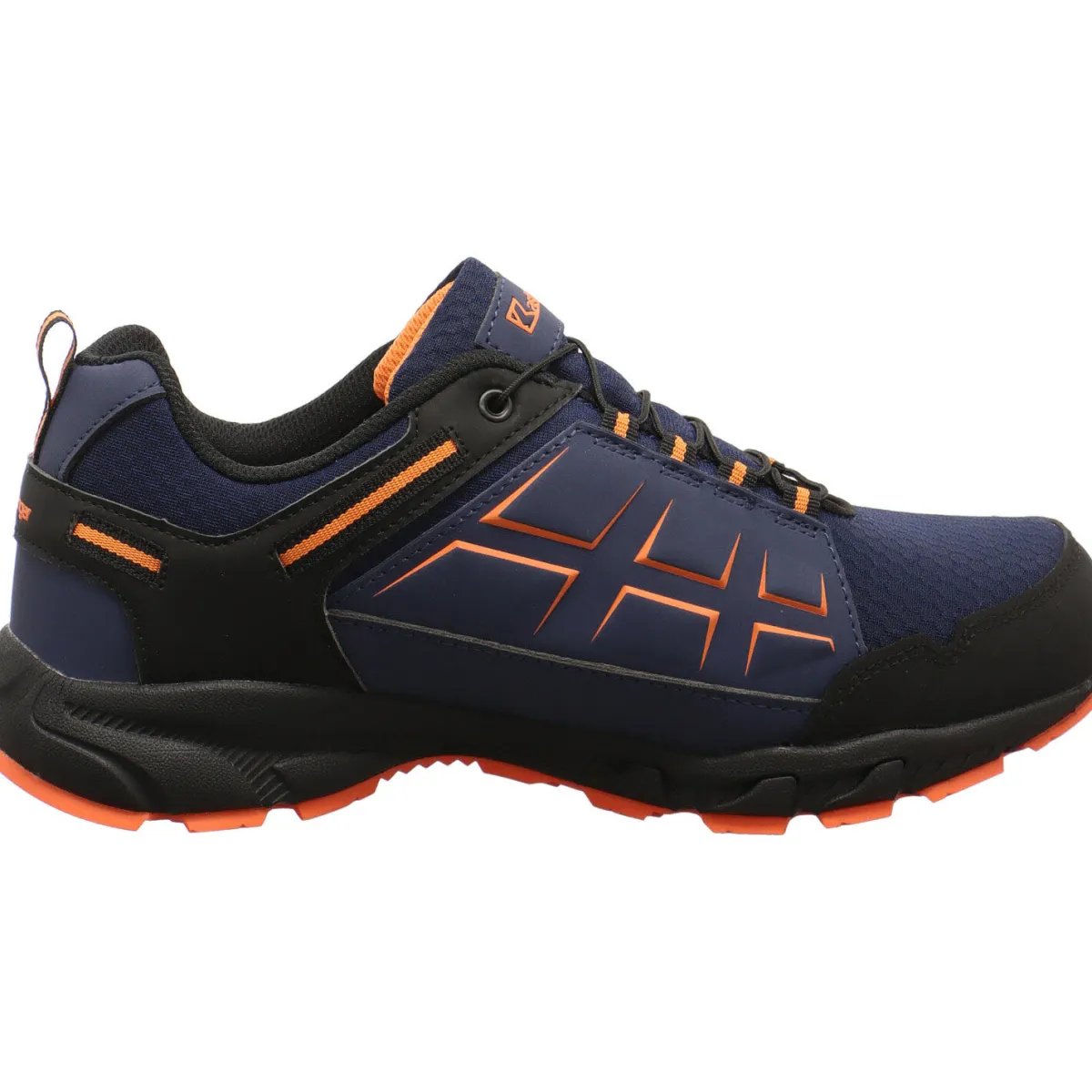 Gefertigt aus einem Mix aus Kunstleder und Textil Blau mit Orange, ist die Schuhspitze und Ferse verstärkt, wodurch der Schuh besonders robust ist.