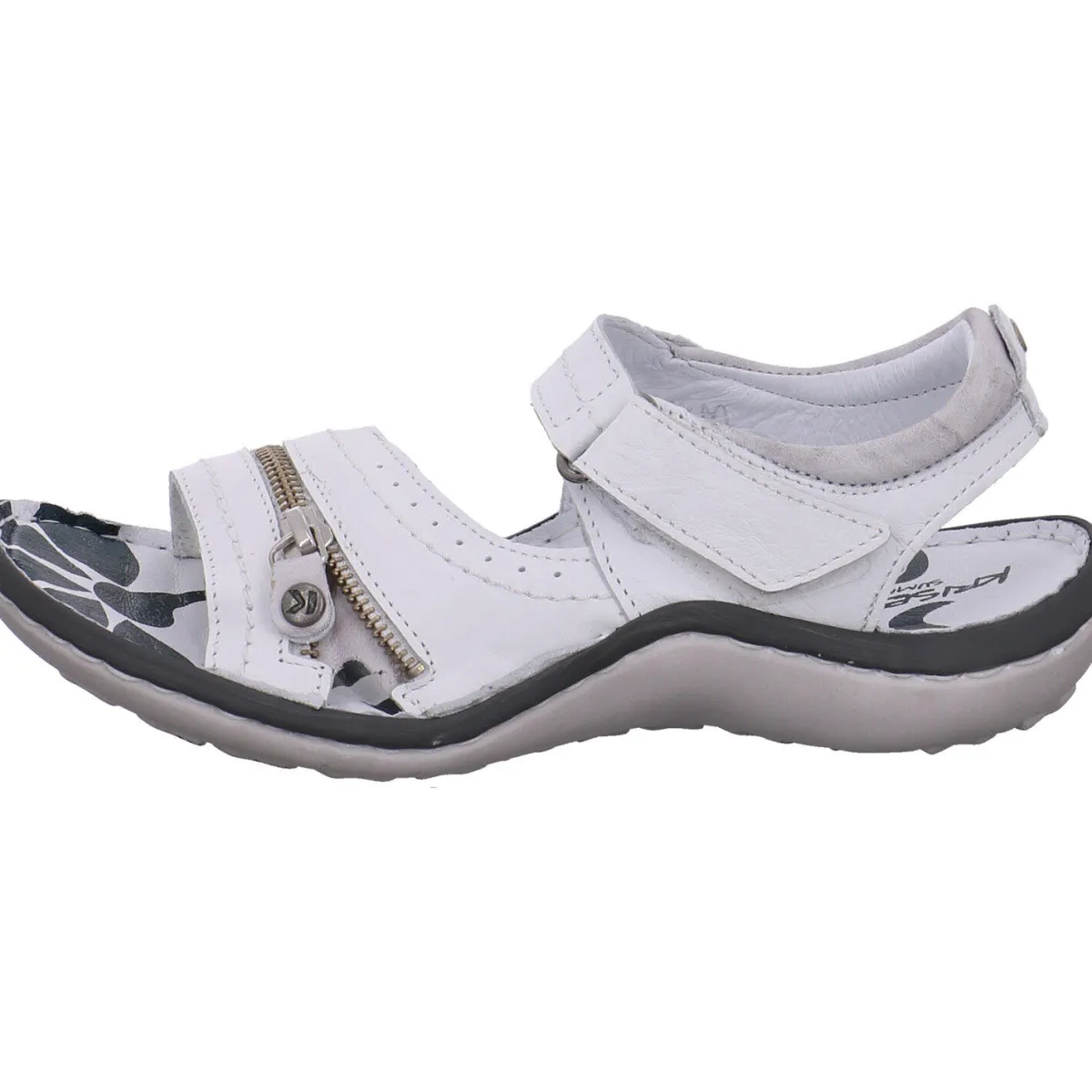 Die Aufmachung aus ausgesuchtem Echtleder in Weiß wird durch den Deko Zipper perfekt in Szene gesetzt.