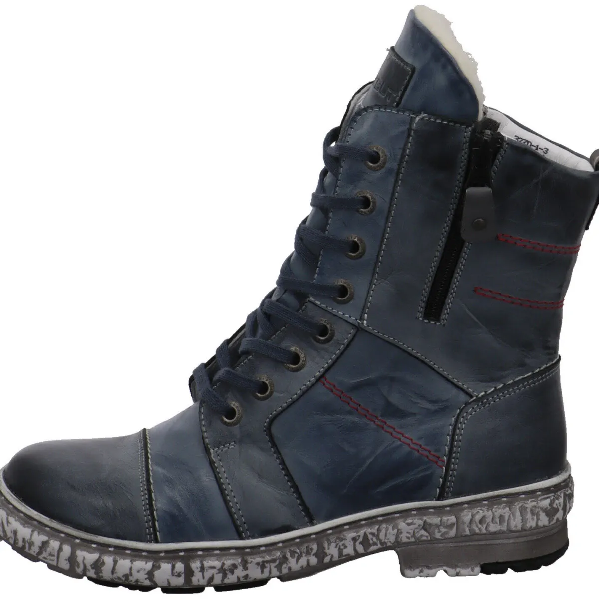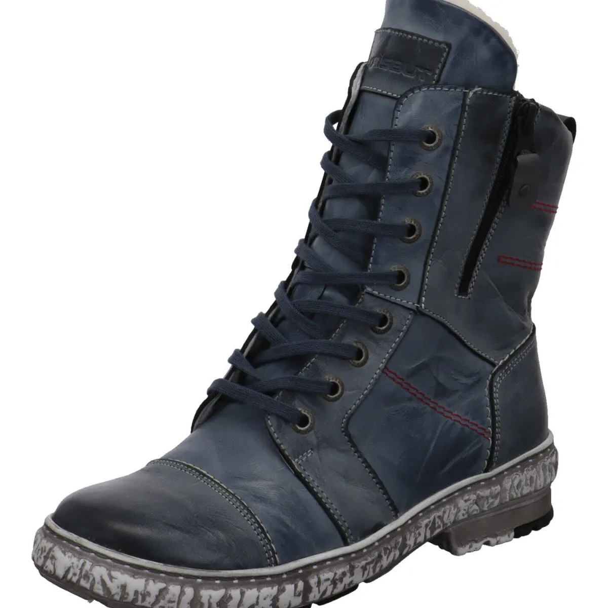 Das kleine Band am Schaft ist als Einstieghilfe vorgesehen und die Ziernähte in Rot und Weiß runden das Design gekonnt ab. Der Reißverschluss hilft bei einem leichten Einstieg und durch die Schnürung lässt sich der Schuh toll an den Fuß anpassen. Die Innensohle ist als Wechselfußbett gearbeitet und die grobe Laufsohle ist Grau abgesetzt und gibt guten Halt. Tolle Boots für den Winter.