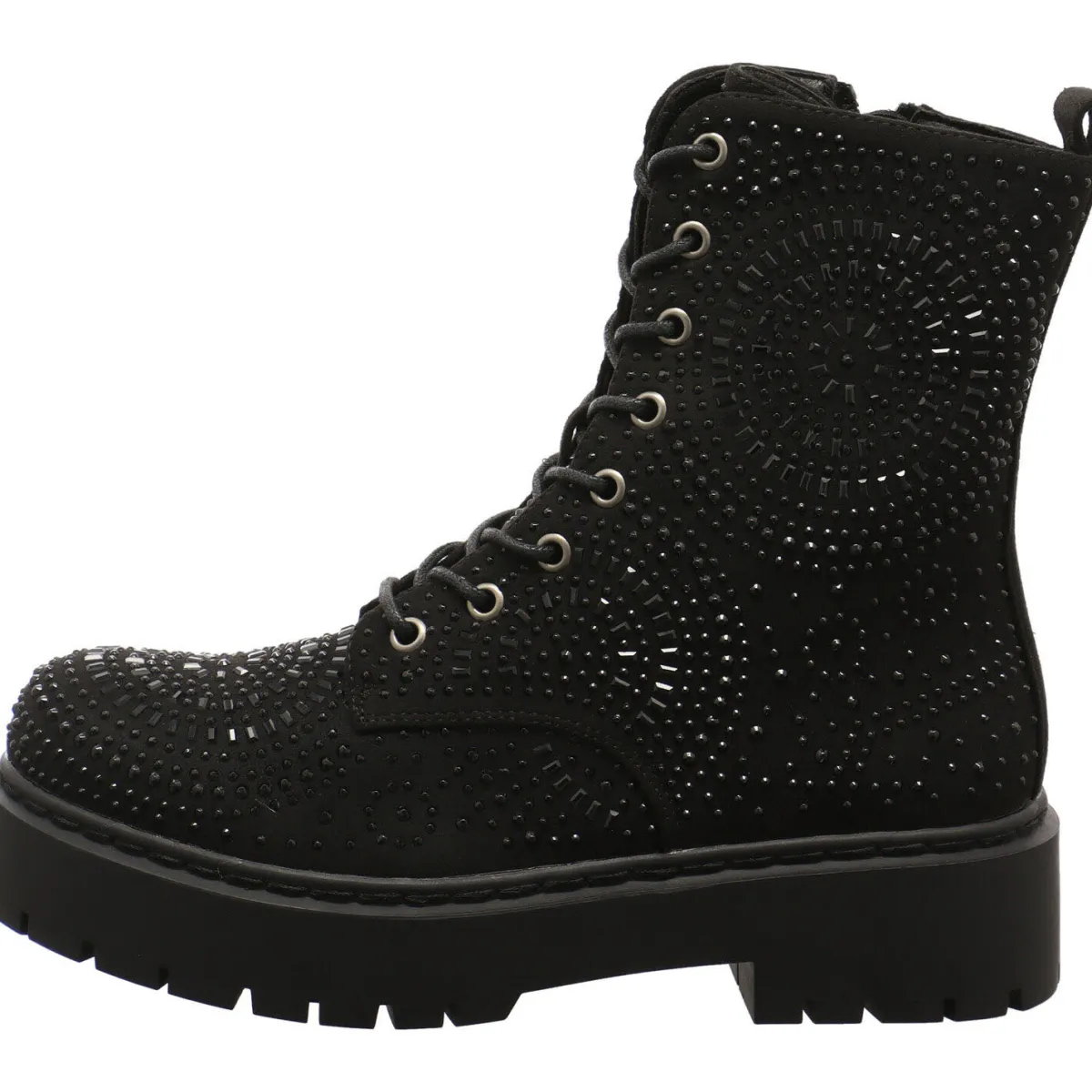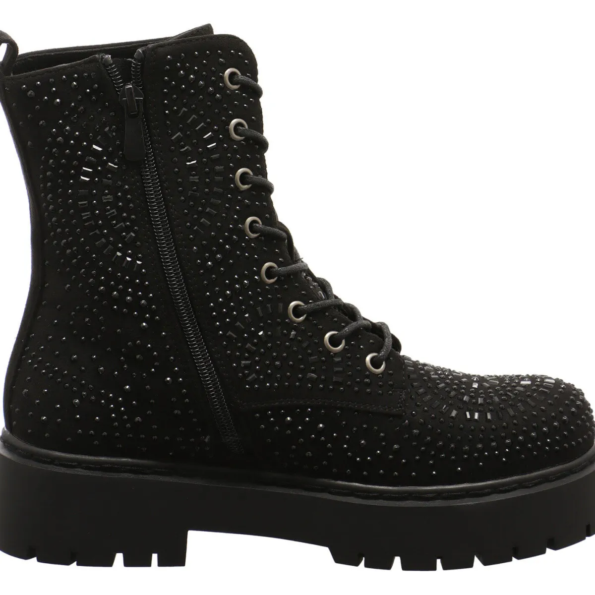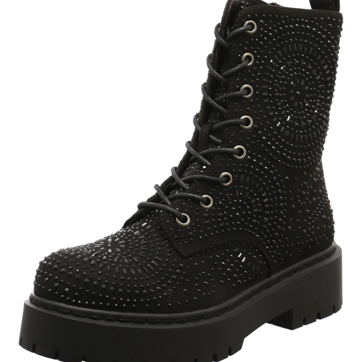 Das Obermaterial aus Textil in Schwarz, wurde mt ganz vielen kleinen Strasssteinen in Schwarz versehen. Diese funkeln im Licht, sind zudem noch als ein tolles Muster angeordnet und machen jedes Outfit zu einem Highlight.