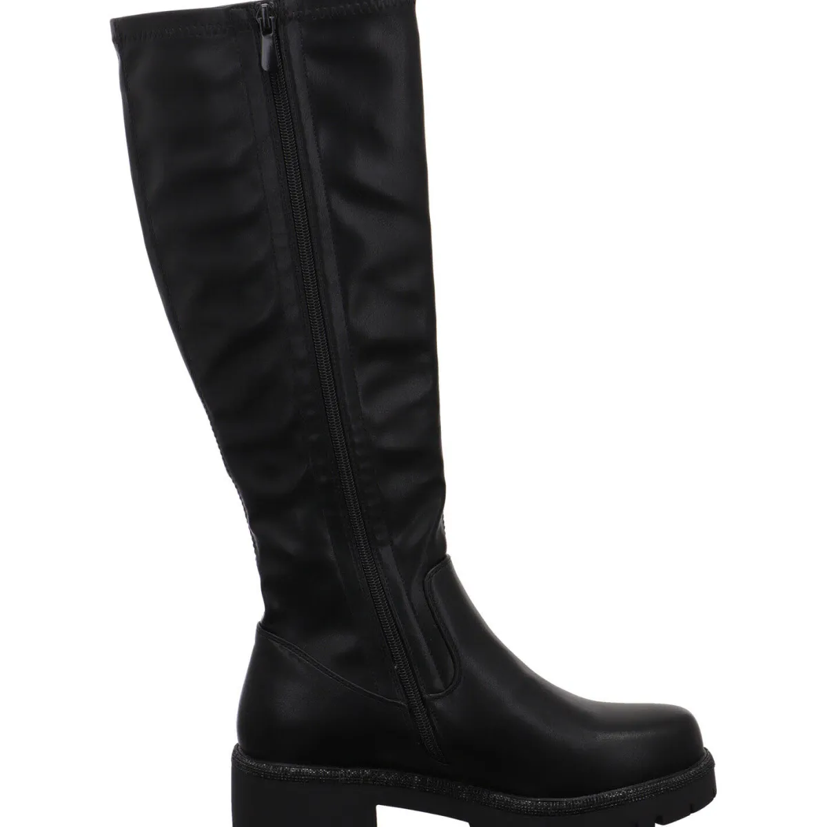 Dieser schöne Damen Stiefel von La Strada darf natürlich nicht fehlen. Er wurde aus Kunstleder in Schwarz gefertigt und hat einen knielangen Schaft. An diesem findest du einen Reißverschluss, mit dem das An- und Ausziehen ganz einfach ist.