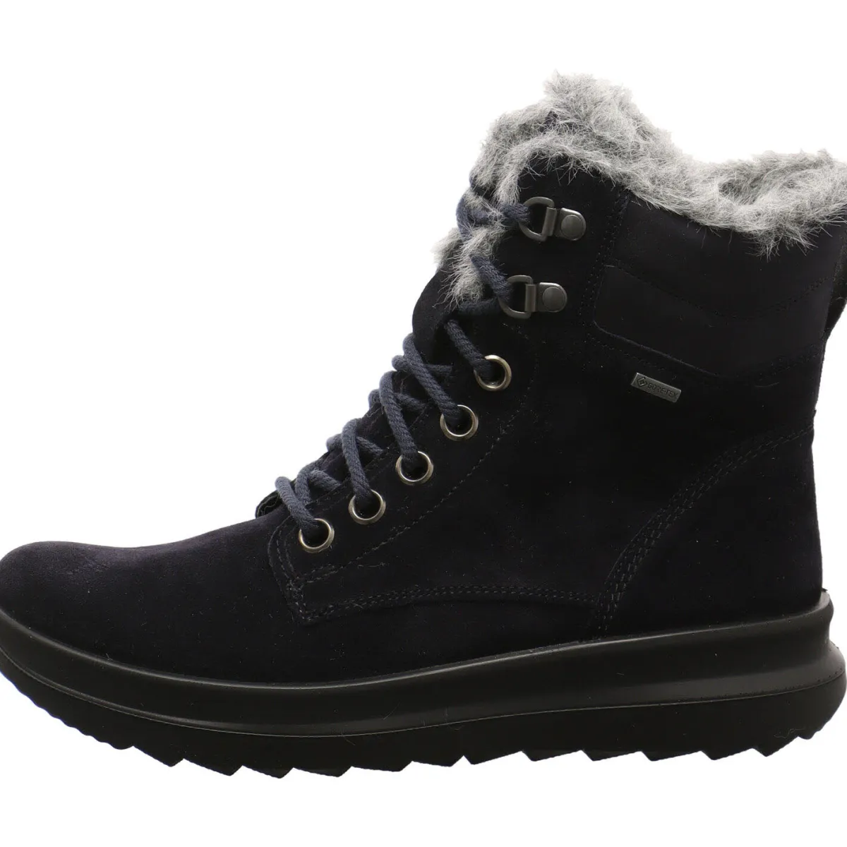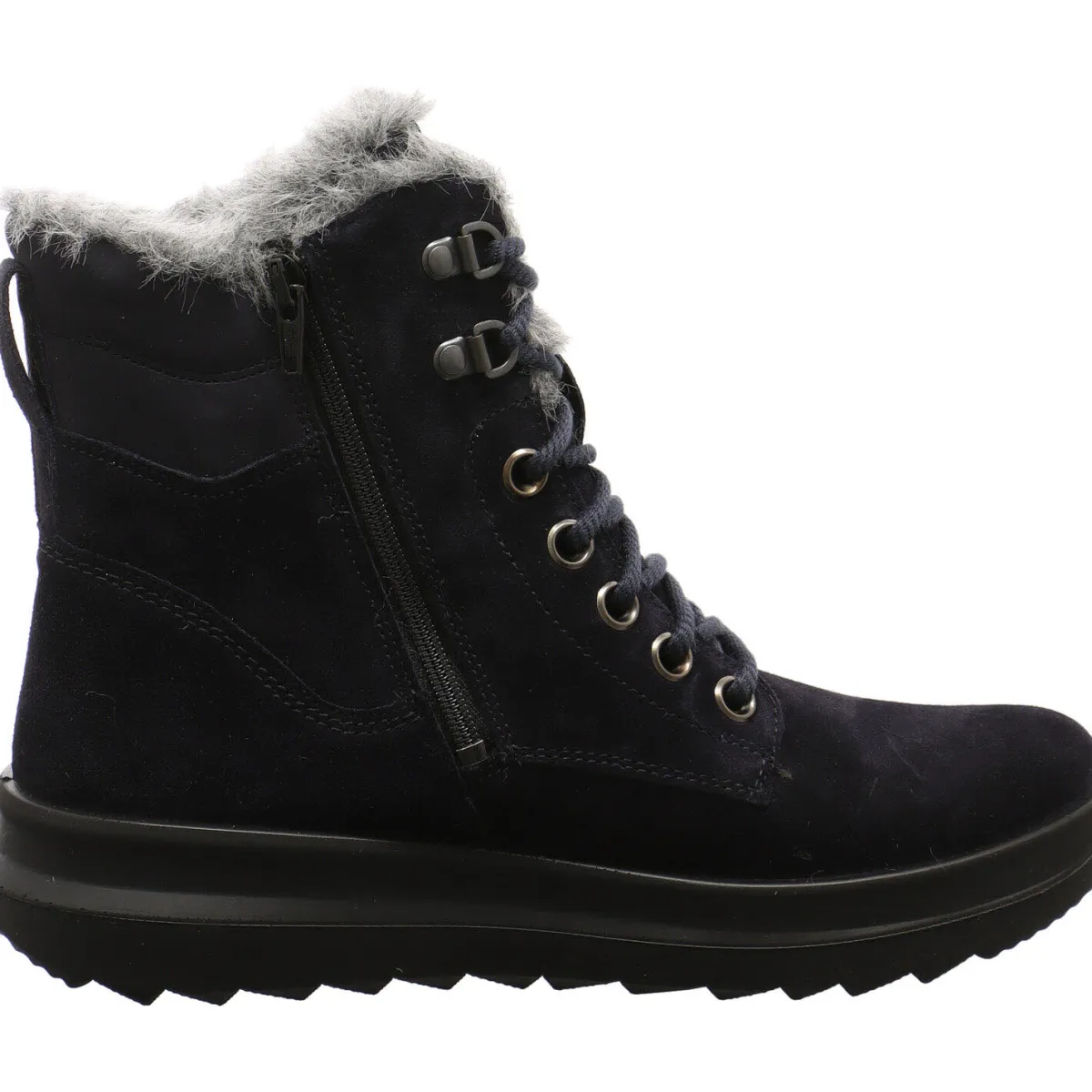 Das Obermaterial wurde in einem Mix aus Echtleder und Textil in Blau gefertigt. Der Schaft ist angenehm weich gepolstert und mit einer schönen Plüsch Kante versehen.