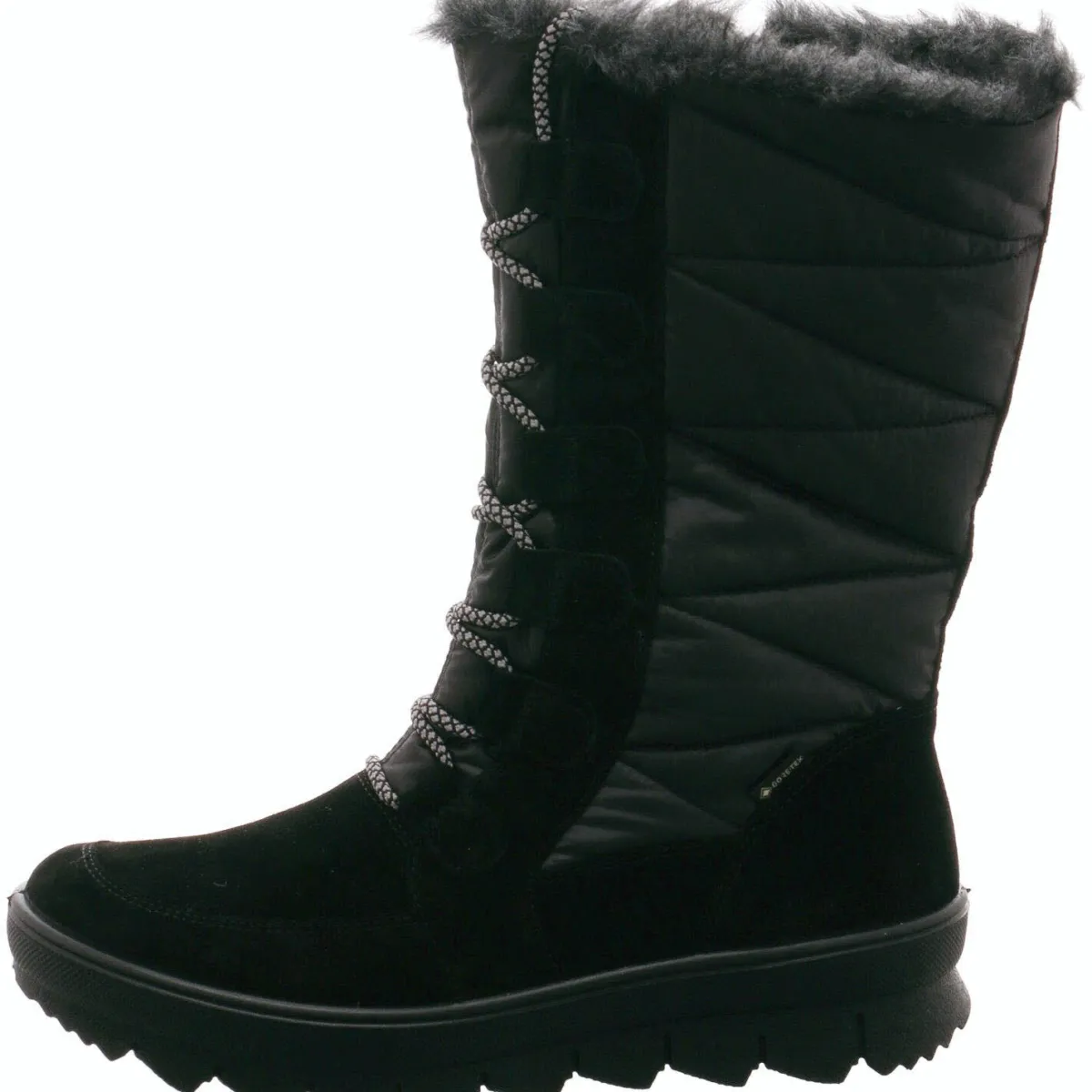 Die sportive Laufsohle ist extra leicht und flexibel. Sie sorgt damit für einen hohen Komfort beim Gehen sowie für eine gute Bodenhaftung. Außerdem macht die Gore Tex Membran den Winterstiefel absolut wasserdicht und winddicht bei gleichzeitiger Atmungsaktivität. Damit die Membran auch wirklich für trockene Füße sorgt, achte bitte auf die richtige Auswahl der Socken, diese sollten nicht aus reiner Baumwolle bestehen. Beim Tragen reiner Baumwollsocken kannst du nämlich trotzdem nasse Füße bekommen, allerdings nicht vom Regen oder Schnee, sondern vom Tropenklima in den Schuhen.