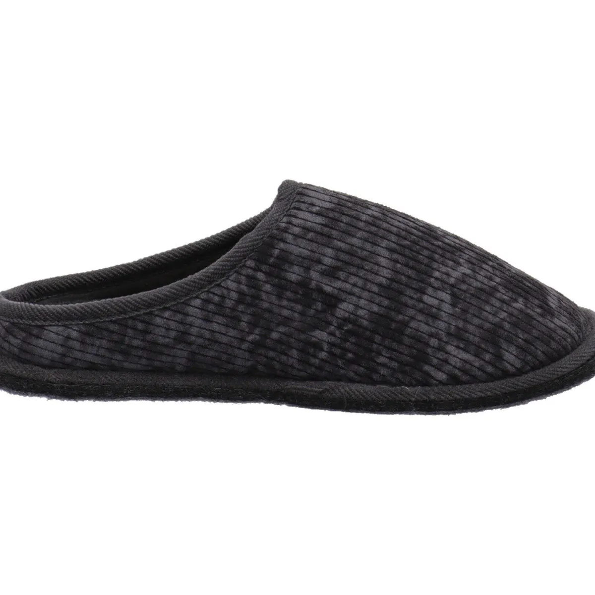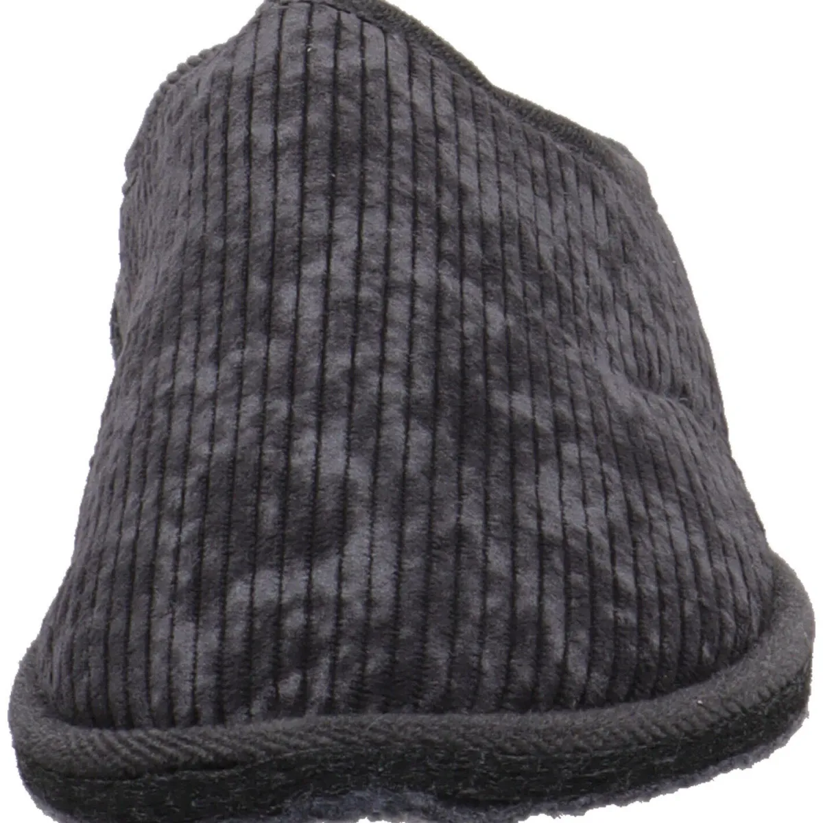 Er wurde aus weichem Textil in Kord Optik in Grau gefertigt. Die Innesohle ist angenehm weich und sorgt für einen weichen Auftritt. Der Pantoffel ist besonders leicht und flexibel gearbeitet und kann auch als Gästehausschuh genutzt werden.