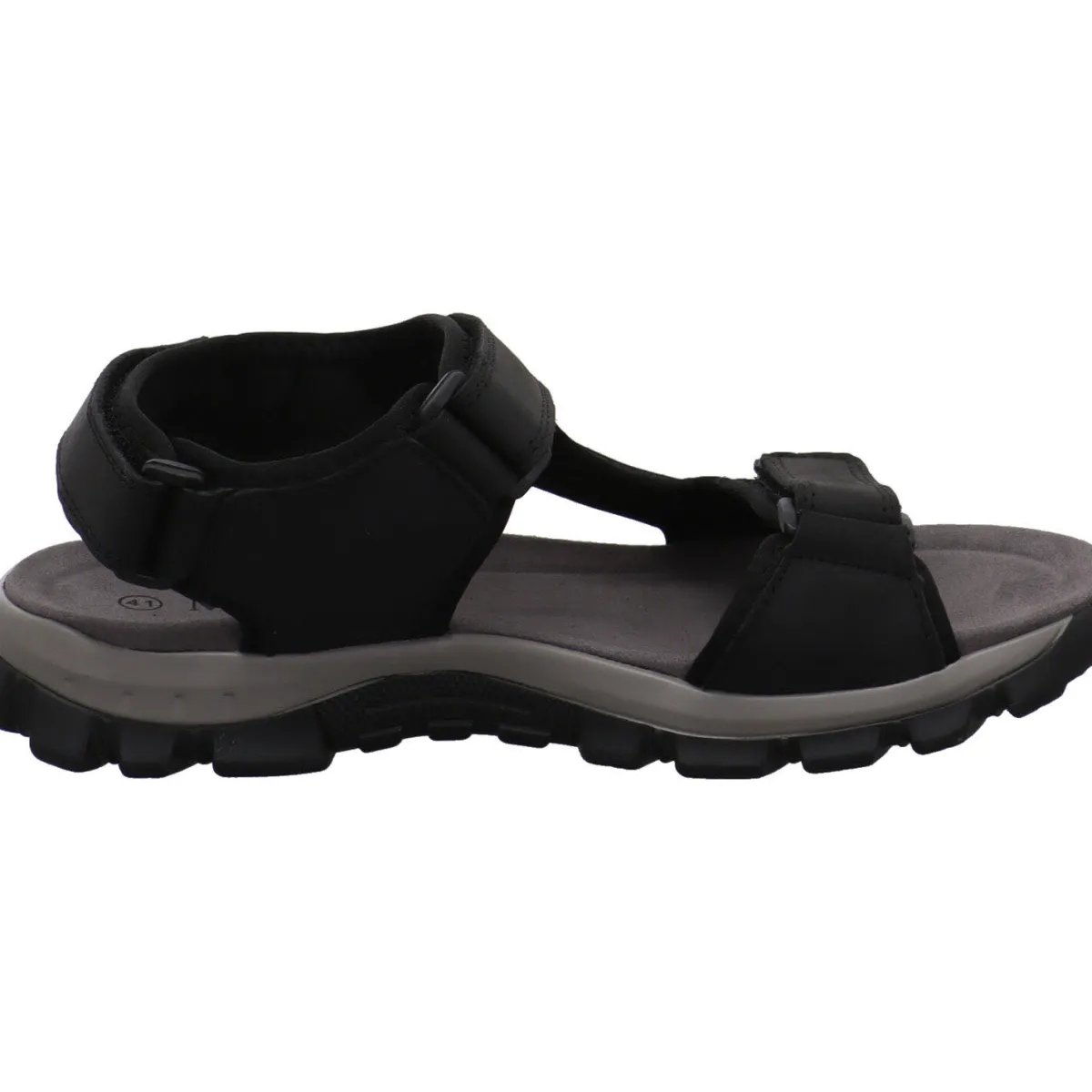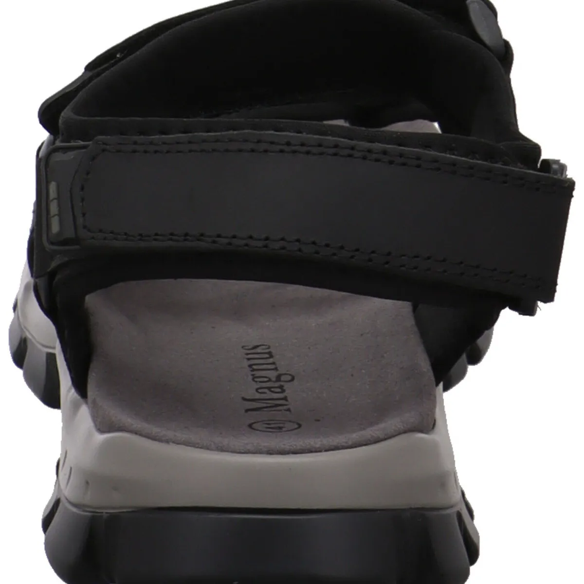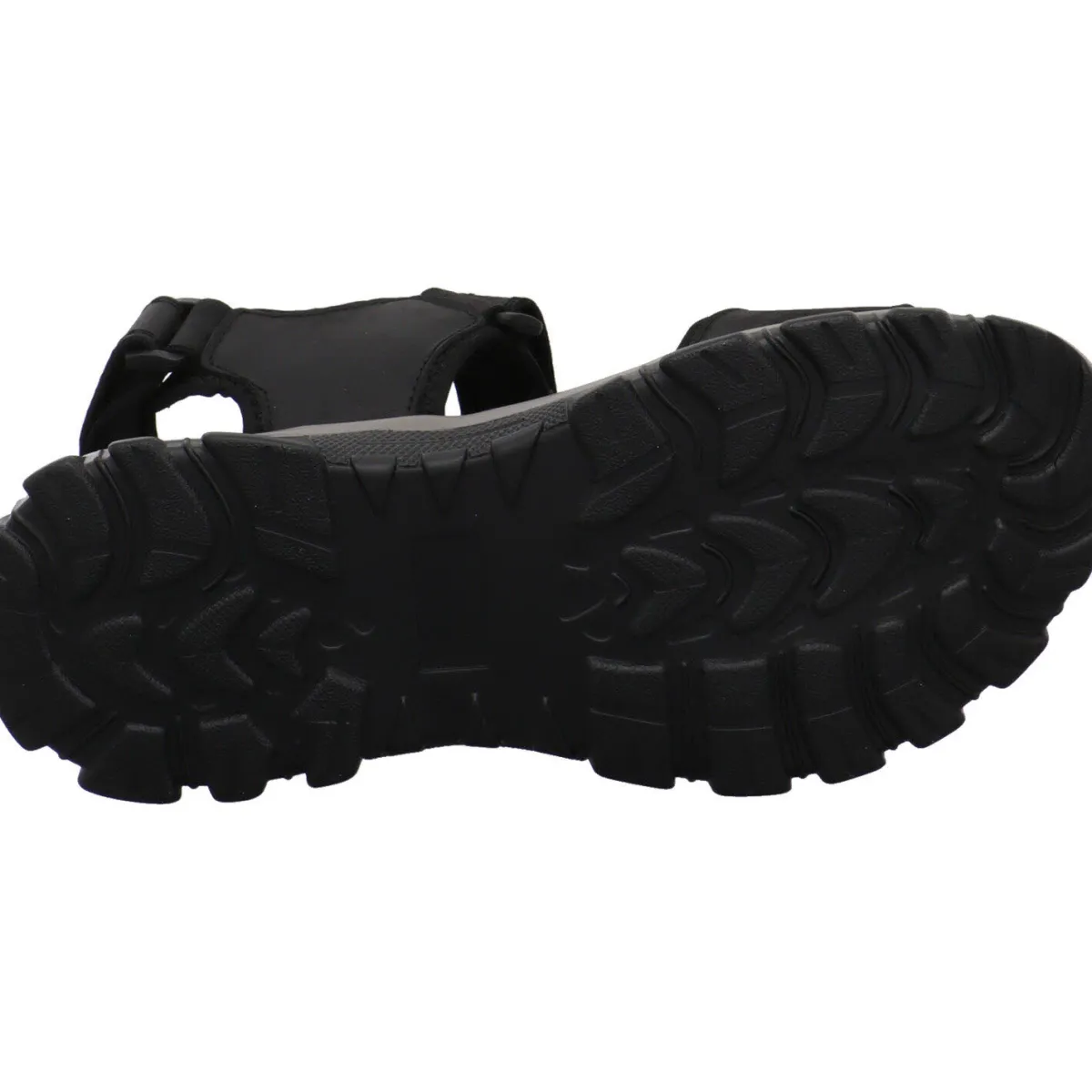 Das Obermaterial aus Echtleder in Schwarz ist mit Textil unterlegt. So ist der Schuh angenehm weich. Durch den dreifachen Klettverschluss ist der Einstieg besonders einfach und du kannst den Schuh genau auf deine Bedürfnisse anpassen. Die Innensohle ist weich gearbeitet. Die Laufsohle im Trekking Look ist robust, so sind auch steinige Untergründe leicht zu meistern.