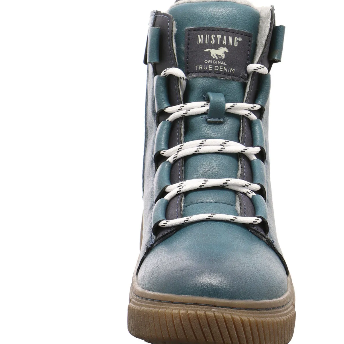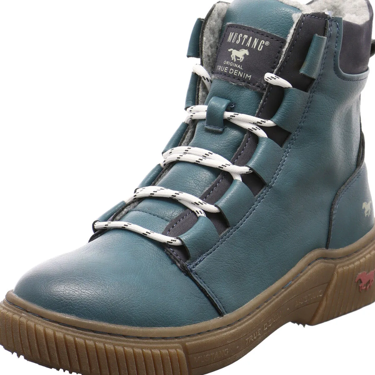 Gefertigt aus hochwertigem Kunstleder in Blau ist er mit farblich abgesetzten Schnürsenkeln versehen und dadurch ein absoluter Hingucker. Ein weiteres tolles Detail ist das Markenlogo auf der Zunge. Auch die Kante vom Schaft ist farblich abgesetzt und außerdem weich gepolstert. Das flauschige, dicke Innenfutter hält deine Füße angenehm warm.