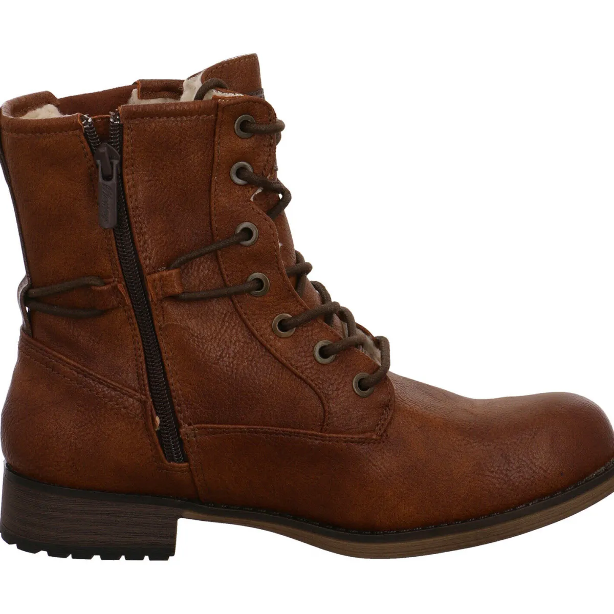 Der Blockabsatz mit einer Höhe von 3cm sowie die leicht profilierte Laufsohle mit integriertem Mustang-Logo runden das Gesamtkonzept ab.