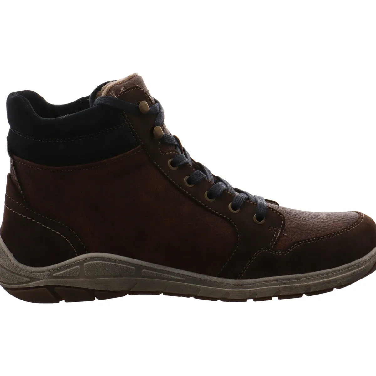 Gefertigt aus stylisch verarbeitetem Kunstleder sieht der Boots nicht nur schick aus, sondern ist auch robust und langlebig. Der Schaftabschluss ist Blau abgesetzt und angenehm gepolstert und die Ziernähte geben dem Schuh das gewisse Extra.