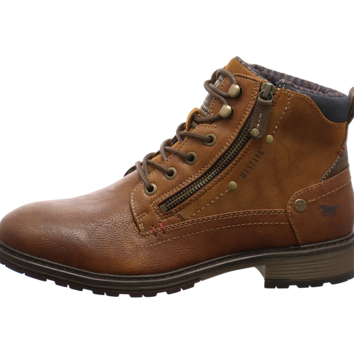 Nieten und das Mustang Logo an verschiedenen Stellen runden den sportlichen Look perfekt ab. Der Blockabsatz mit der Laufsohle ist profiliert und gibt Halt auf jedem Untergrund. Ein toller Stiefel, der sich für die Freizeit, aber auch für die Arbeit wunderbar eignet.