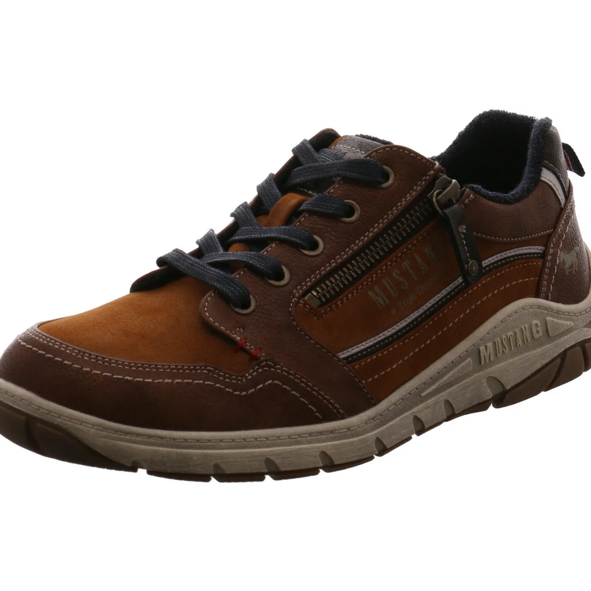 Die unterschiedlichen Braun Farbtöne und die Schnürsenkel in Blau, sorgen für einen tollen Kontrast.