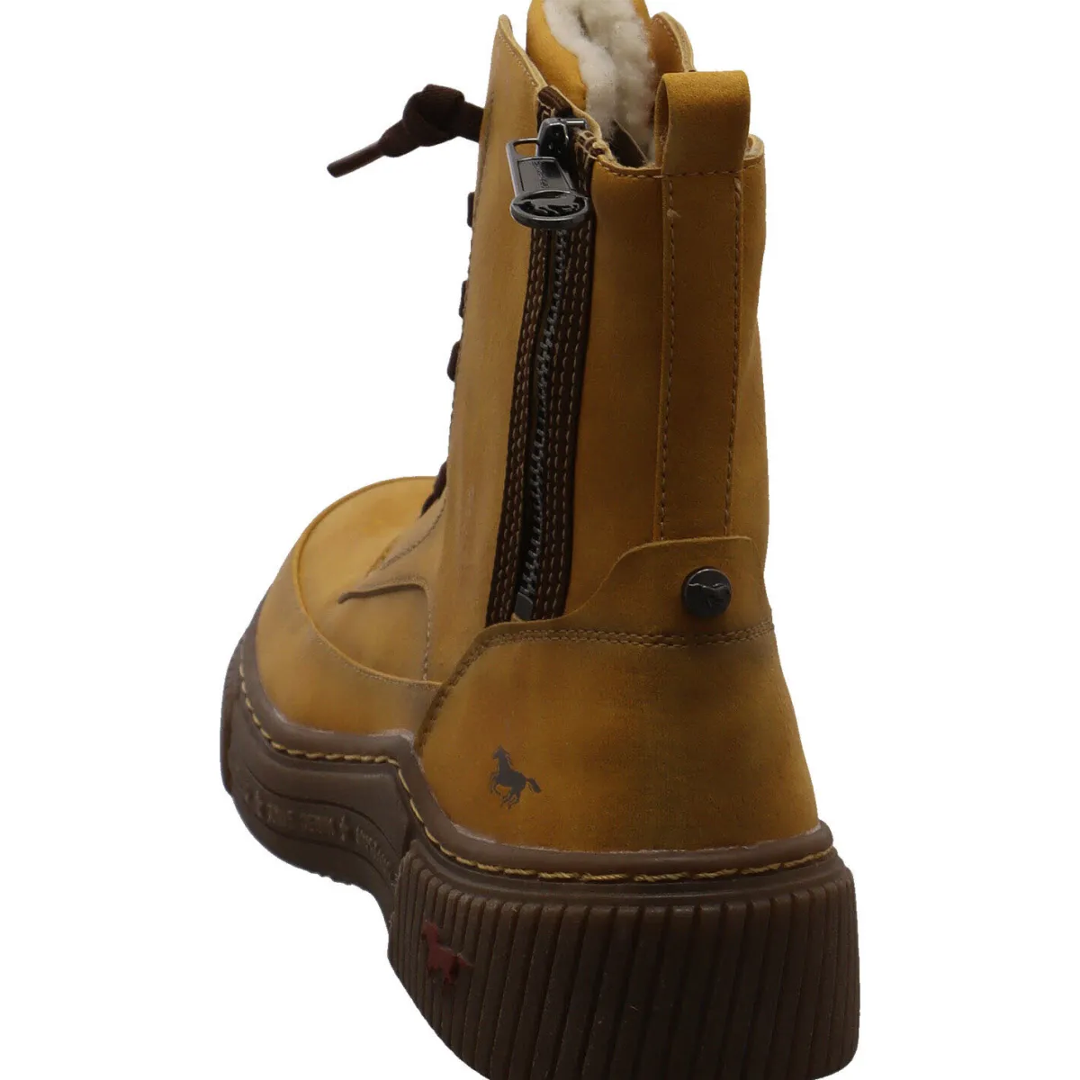 Ein besonderer Hingucker ist der Einsatz am Schaft in Braun und die Schnürung im modernen Look. Die kräftige, gut profilierte Laufsohle mit dem coolen Design rundet das Gesamtkonzept ab. Außerdem besitzt der Schuh einen seitlichen Reißverschluss, welcher für einen komfortablen Einstieg sorgt.