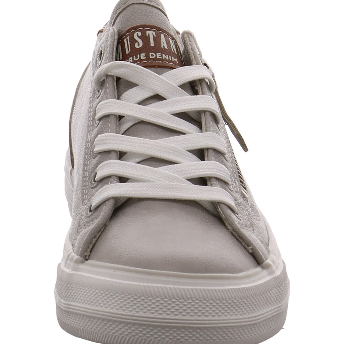 Das Design im Original Mustang Stil mit verschiedenen Logos und Ziernähten und das Obermaterial in Grau und Akzente in Braun, aus hochwertigen Kunstleder sind absolute Eyecatcher.