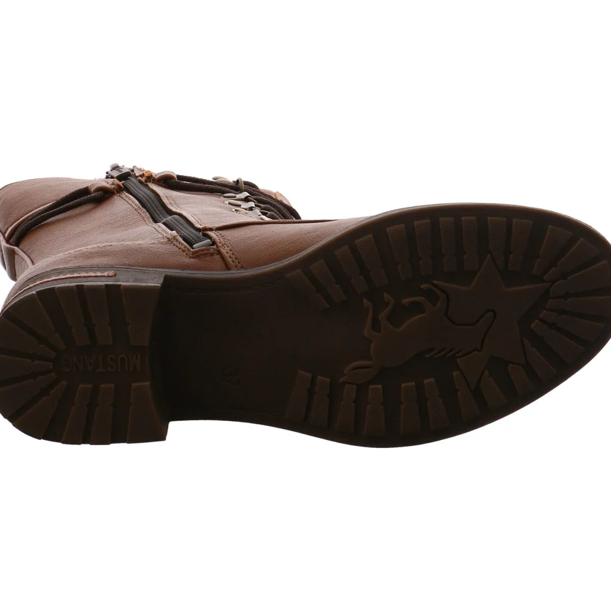 Abgerundet wird der auffällige Look durch die Schnürung, die um den Schaft gebunden ist.