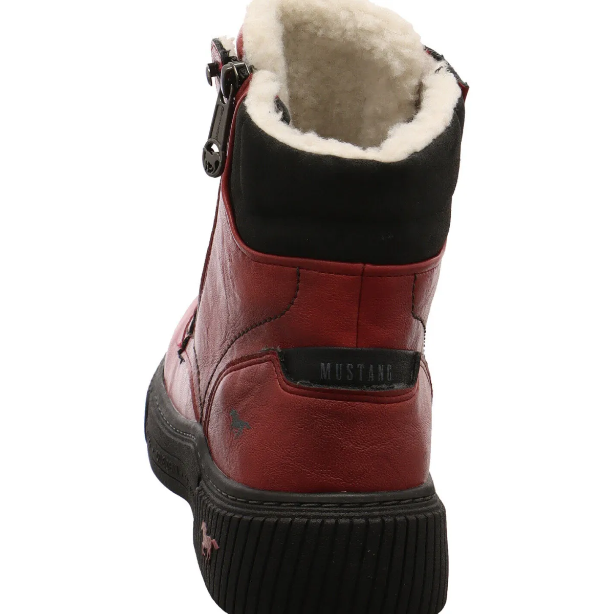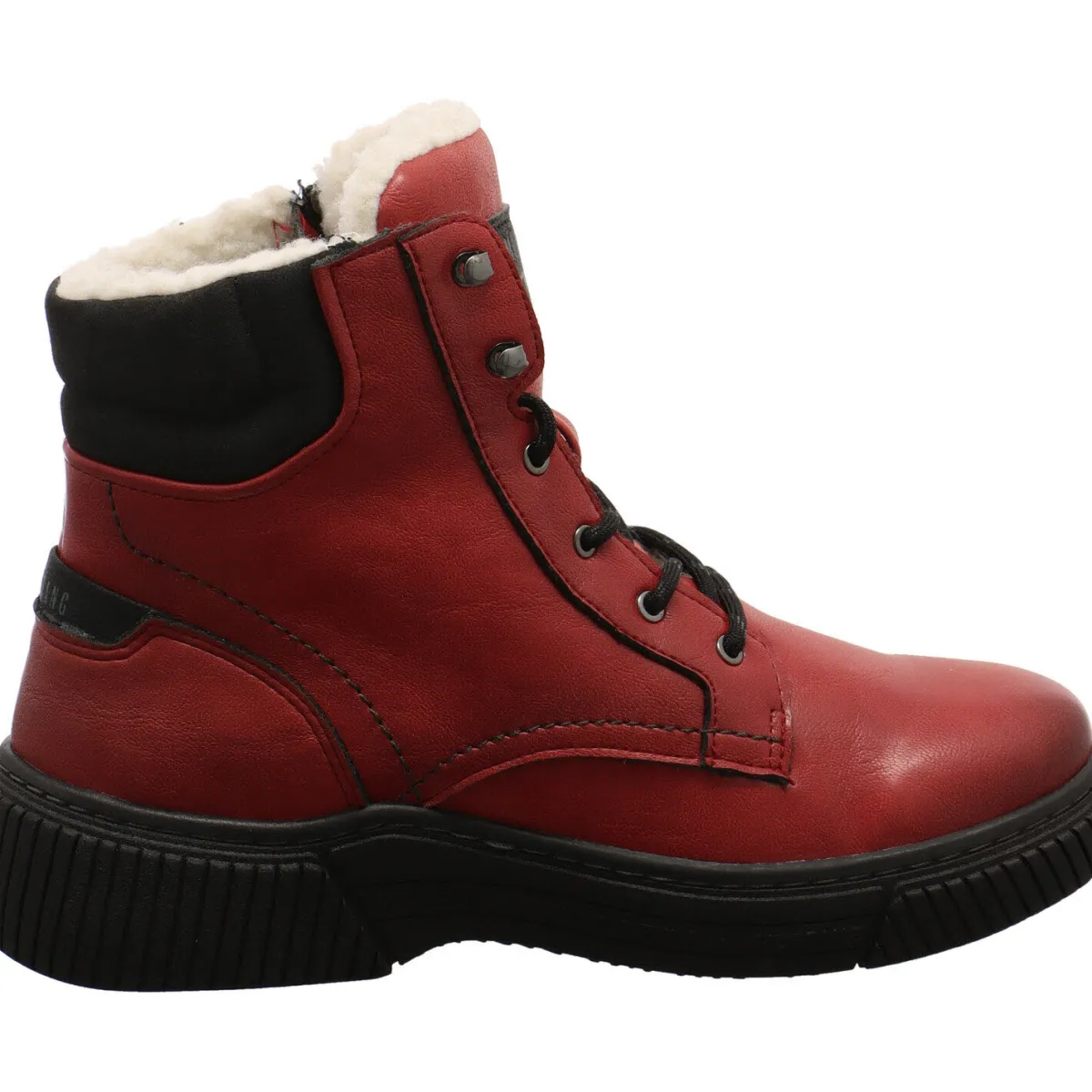 Authentisch genarbtes Obermaterial aus Kunstleder in Rot, wird mit kontrastfarbenen Schnürsenkeln und einem Textil Einsatz am Schaft in Schwarz kombiniert und gibt dem Schuh das gewisse Etwas.