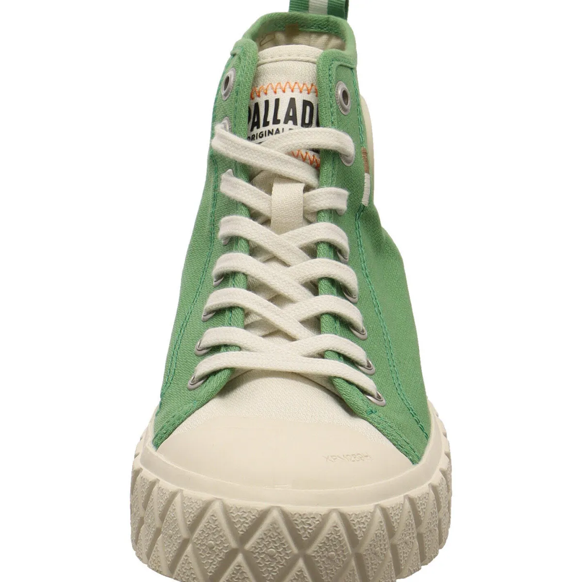 Das Modell Palla Ace Chukka Org von Palladium aus Frankreich, steht für einen Trend seit Generationen. Das Obermaterial aus gewaschenem Canvas Texil in trendigem Grün, ist robust und dennoch flexibel. Highlights sind das Gummi Logopatch und die Supply-Details im Fersenbereich.
