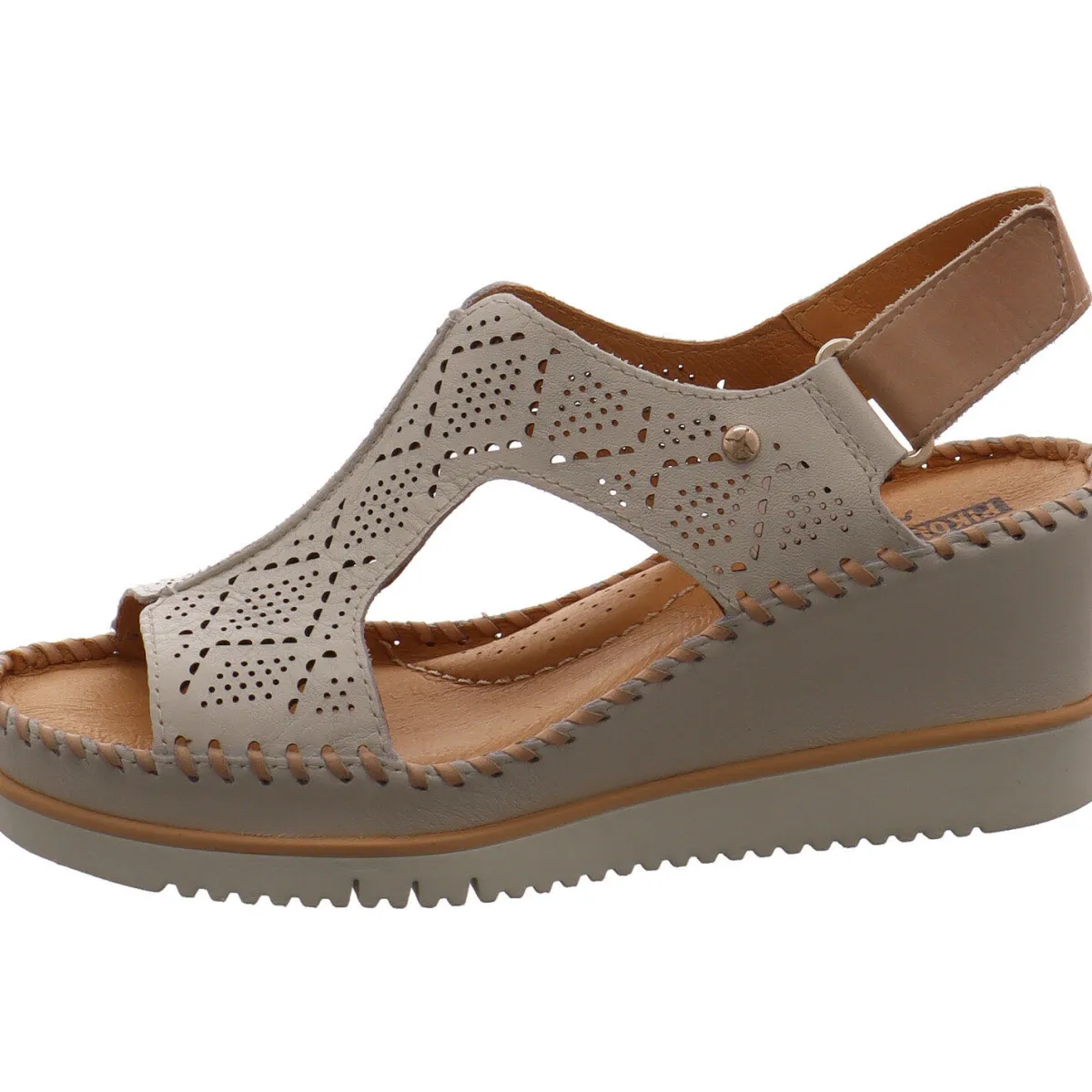 Per Hand aus weichem, hochwertigen Echtleder in Creme Weiß gefertigt, ist der Riemen besonders stilvoll angelegt und mit kleinen Lasercuts versehen. Diese sorgen, neben den Aussparungen für eine tolle Belüftung an heißen Tagen und machen den Schuh zum absoluten Eyecatcher. Durch den dezenten Klettverschluss an der Ferse ist der Einstieg besonders leicht. Der elegante Keilabsatz zaubert lange Beine und gibt dennoch einen guten Halt.