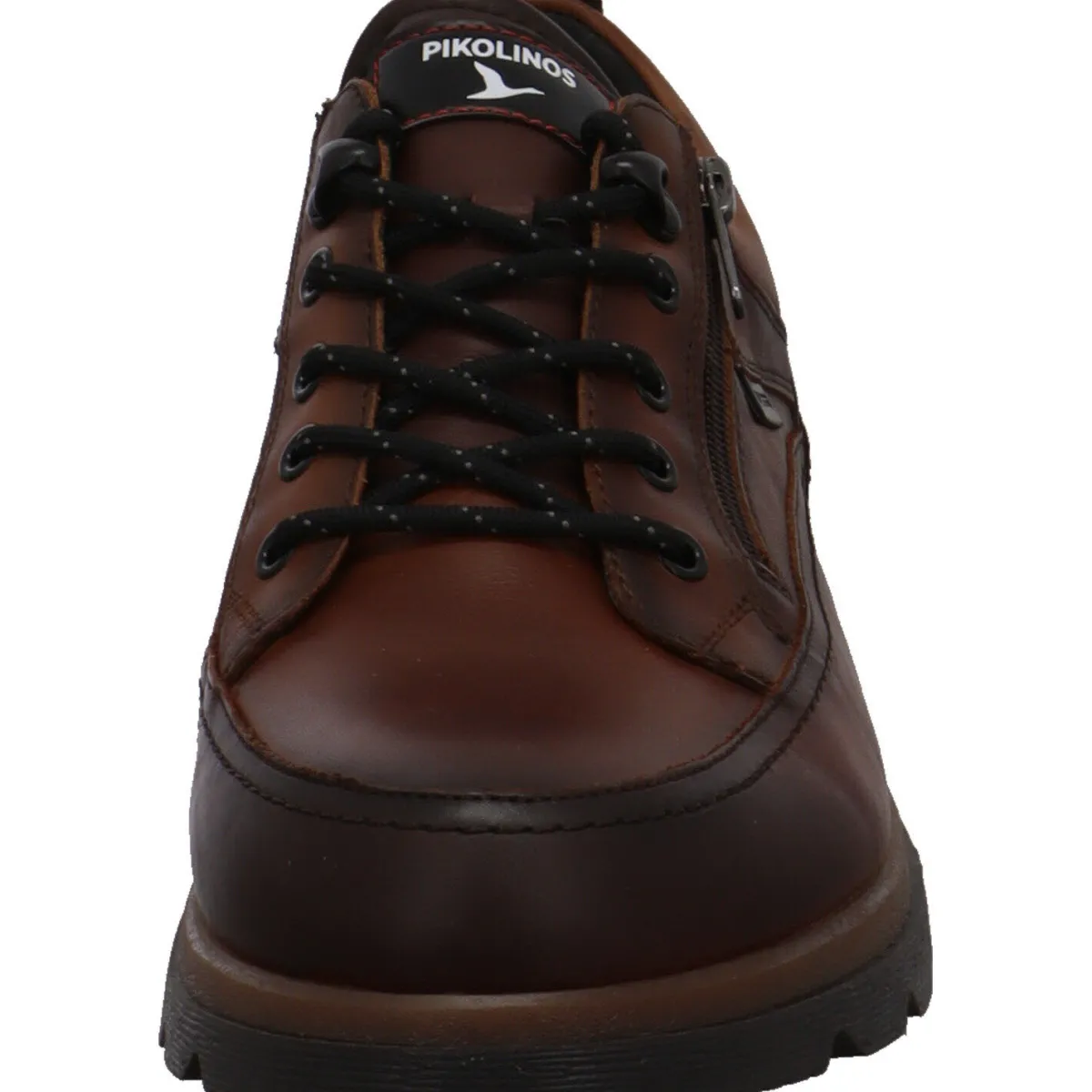 Er wurde aus ausgesuchtem Glattleder in Braun gefertigt und mit einer schönen Overlay Struktur versehen. Highlights sind die Markenlogos auf Zunge und an der Seite und die Schnürung im Bergsteiger-Look.