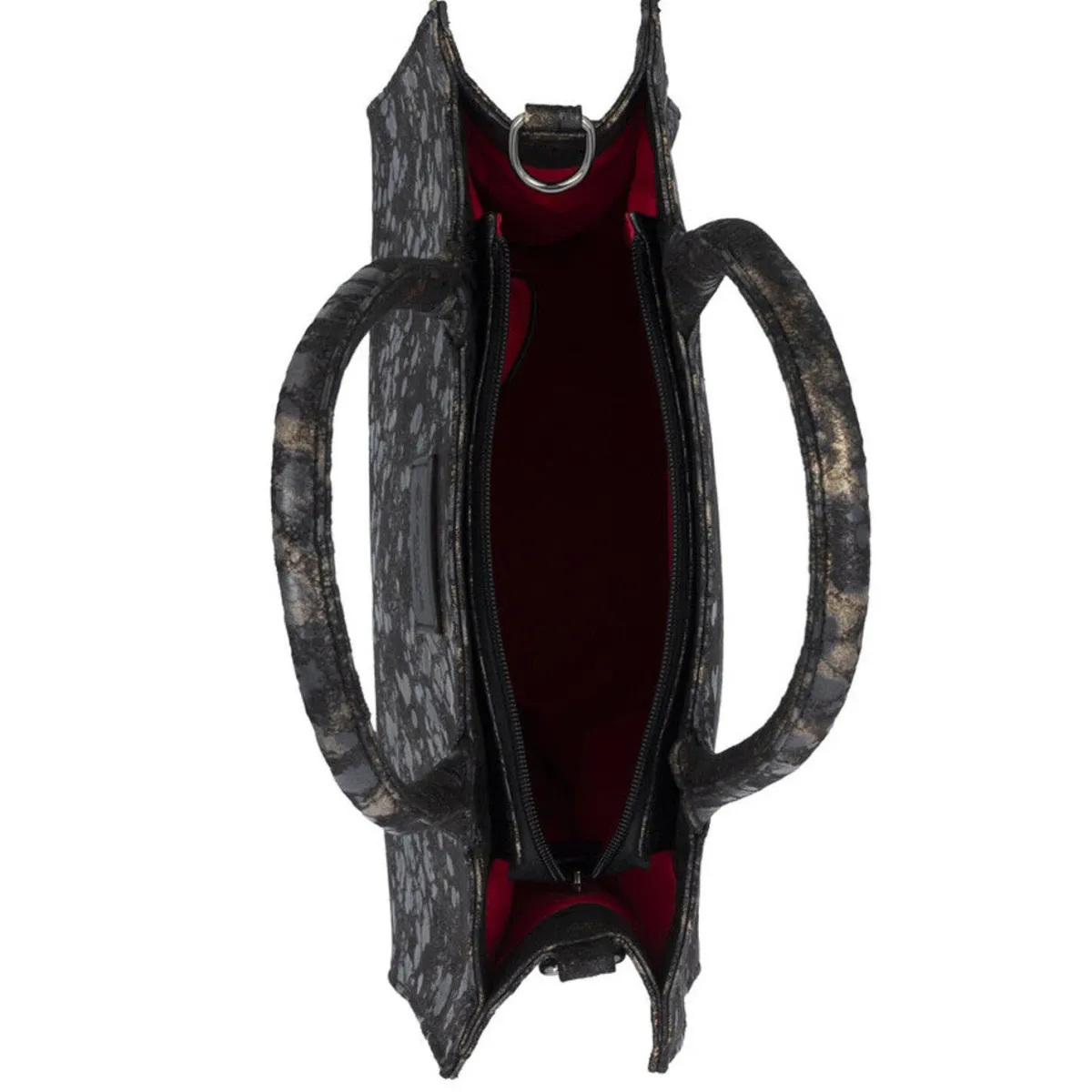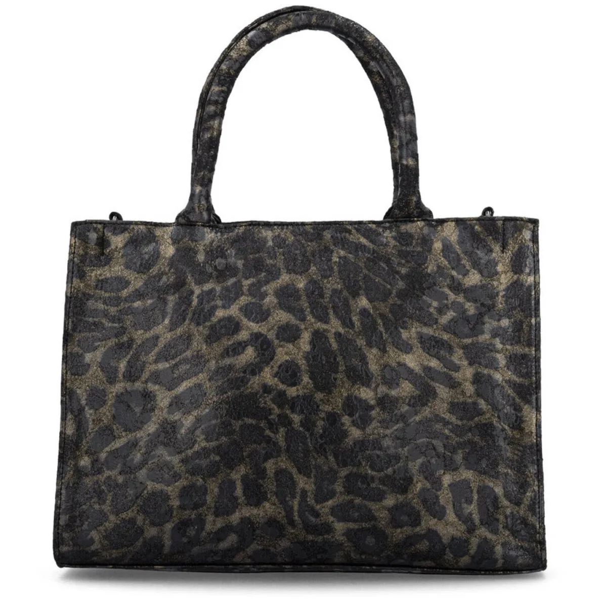 Gefertigt aus softem Kunstleder mit textiler Haptik in Schwarz Gold, ist sie mit einem schönen Leomuster versehen. Das geräumige Format bietet Platz für alle Dinge, die dich im Alltag begleiten sollen.