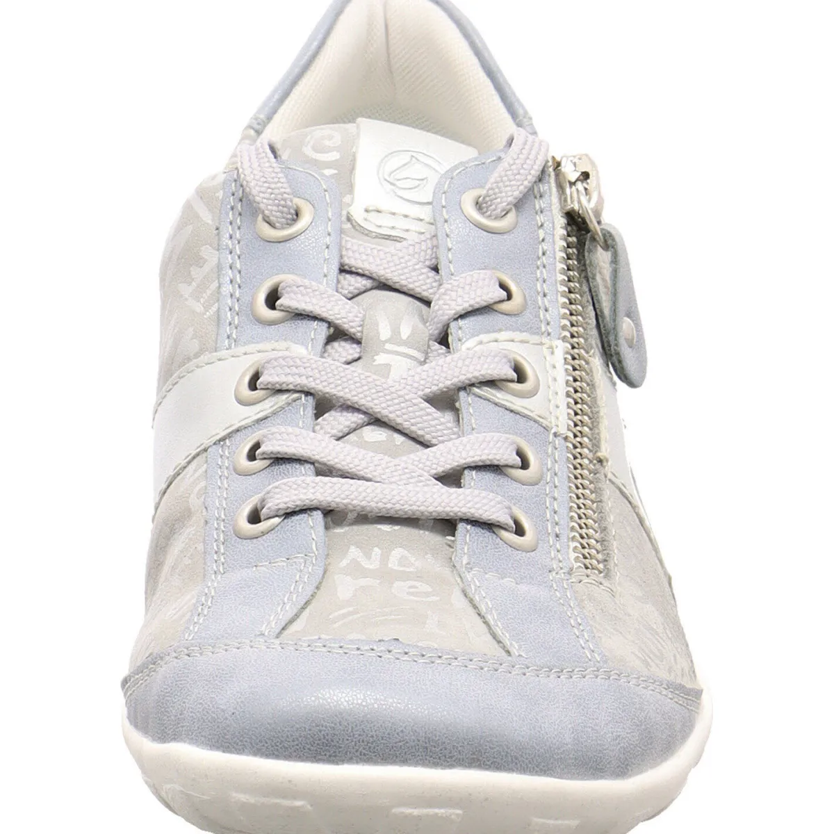 Das Obermaterial ist ein Mix aus Echtleder und hochwertigem Kunstleder in Blau und Grau mit Akzenten in Silber. Das Schrift Muster ist ein echter Hingucker und macht den Schuh zu etwas ganz Besonderem.