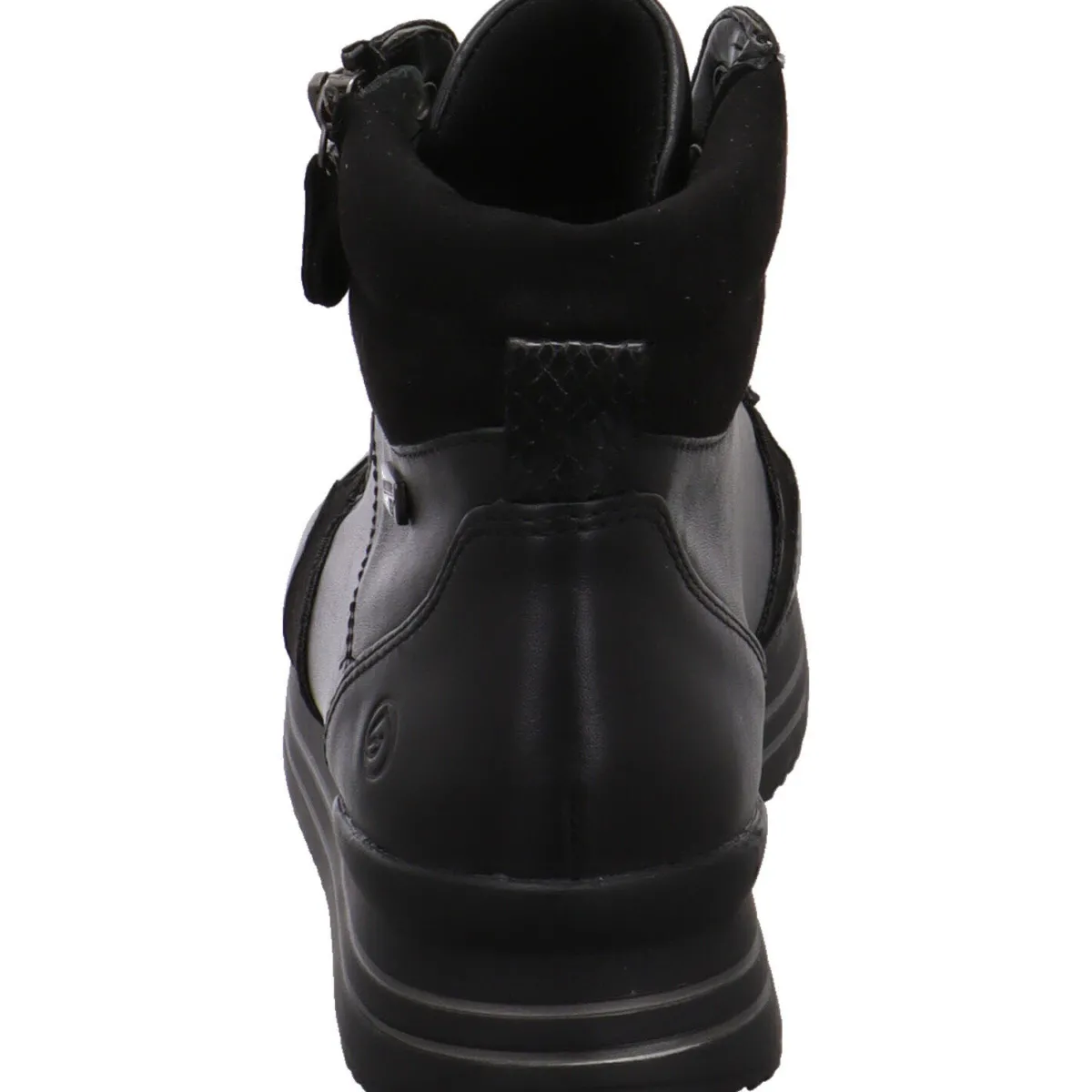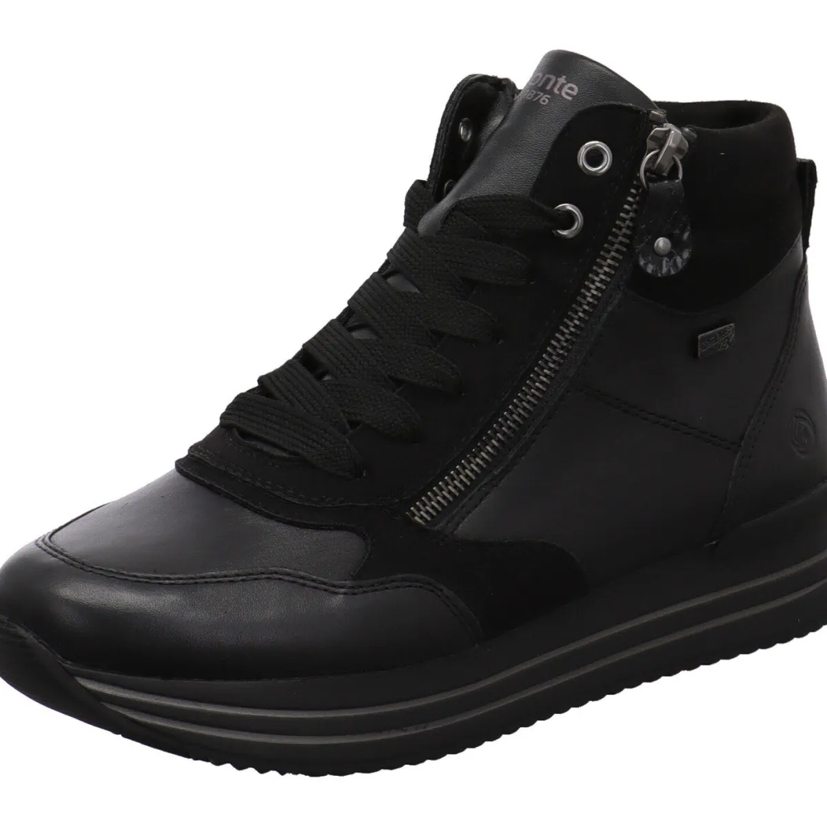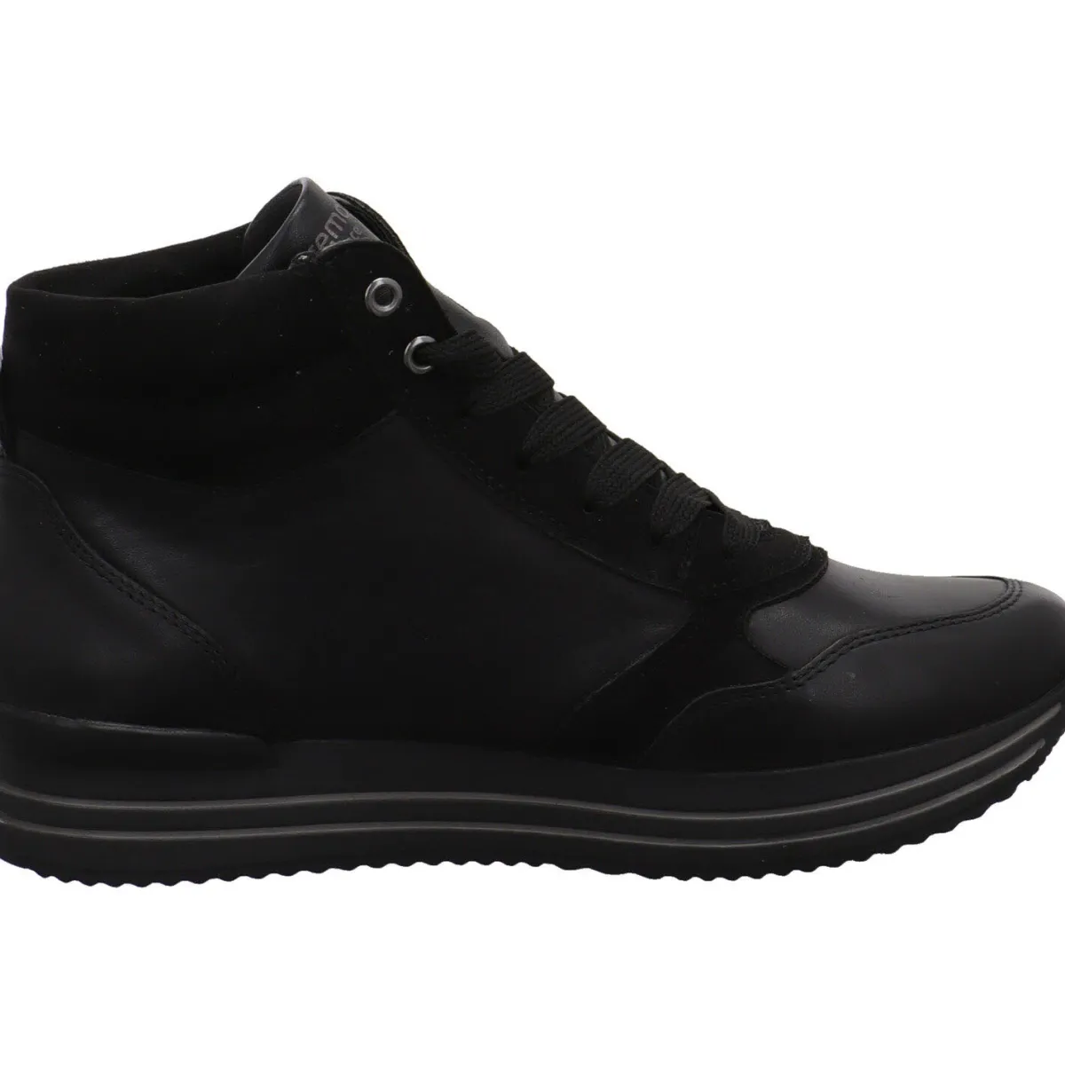 Der seitliche Reißverschluß hilft bei einem leichten Einstieg und mit der Schnürung kannst du ihn genau auf deine Bedürfnisse anpassen. Der Schaft aus Textil ist angenehm weich gepolstert. Die Remonte Soft Innensohle ist als Wechselfußbett gearbeitet und besonders atmungsaktiv, dank der Perforierung im Vorderfuß Bereich. Der Schuh ist mit der Remonte Tex Ausstattung versehen. So meistert er auch regnerische Herbst Tage, da er wasserabweisend ist. Die sportlich geformte Laufsohle hat einen leichten Grip und passt super zum Look.