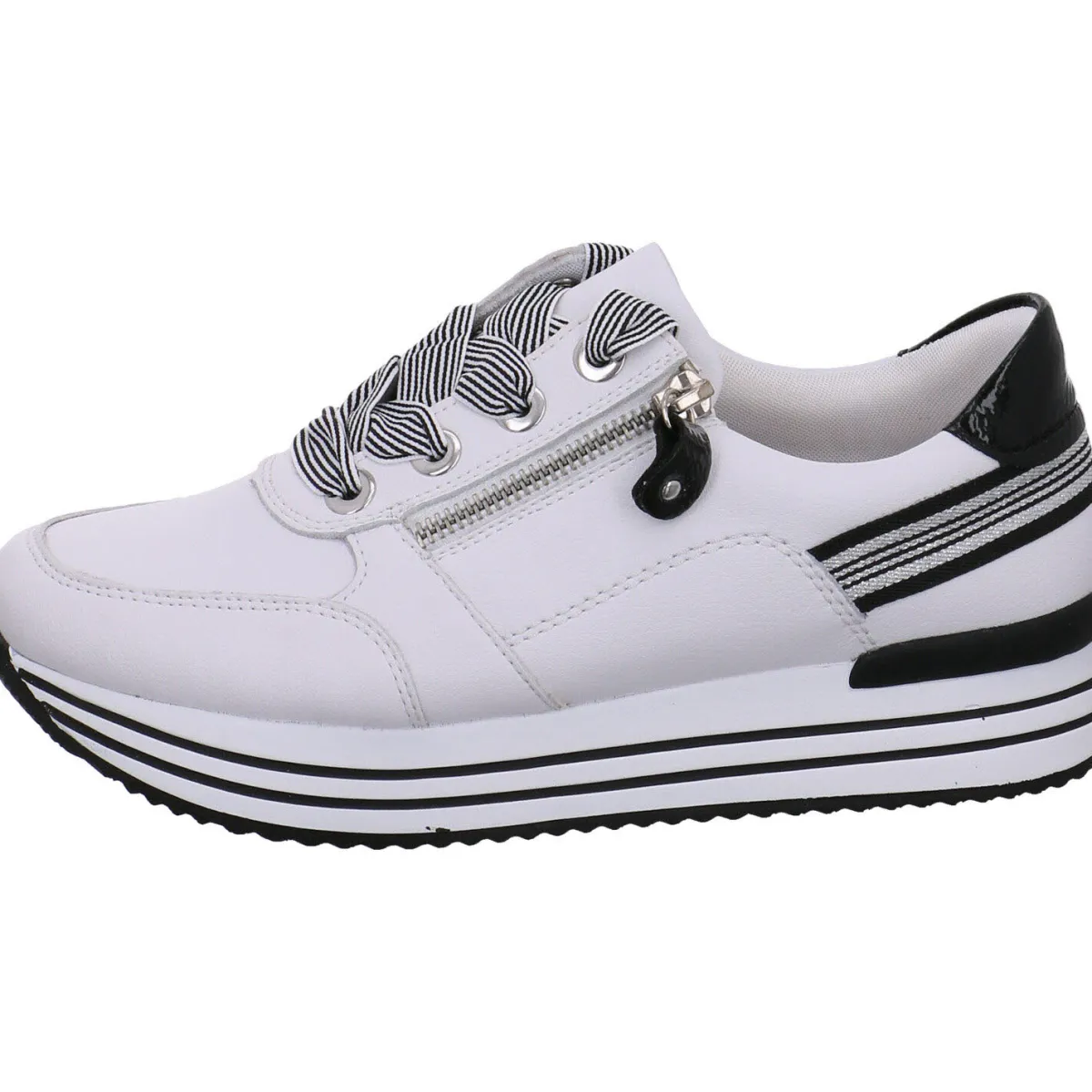 Die breiten Textil Schnürsenkel und die Laufsohle im Streifen Look runden das moderne Design gekonnt ab. Und der seitliche Reißverschluß hilft bei einem leichten Einstieg. Die Remonte soft Innensohle als Wechselfußbett ist besonders atmungsaktiv und Schock absorbierend.