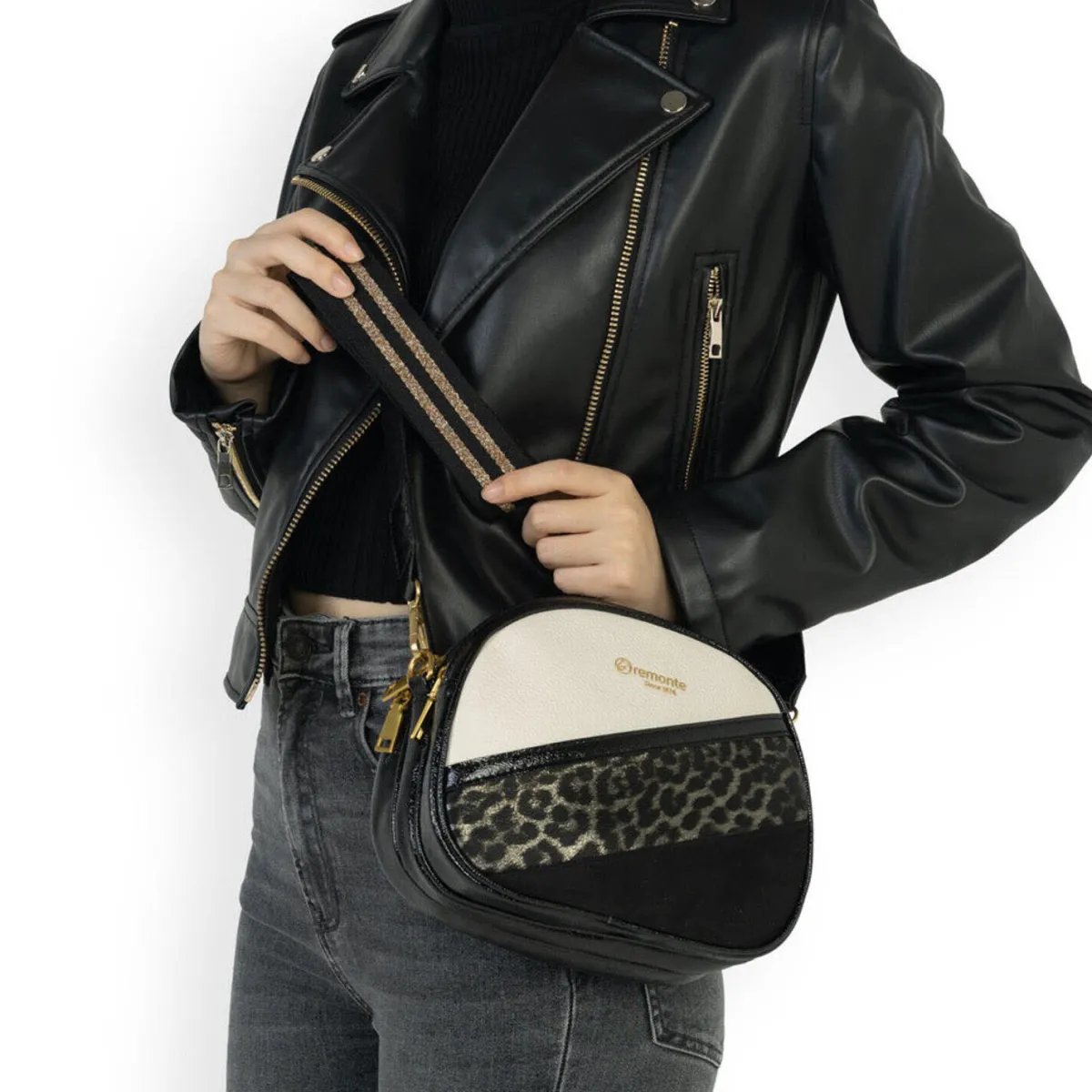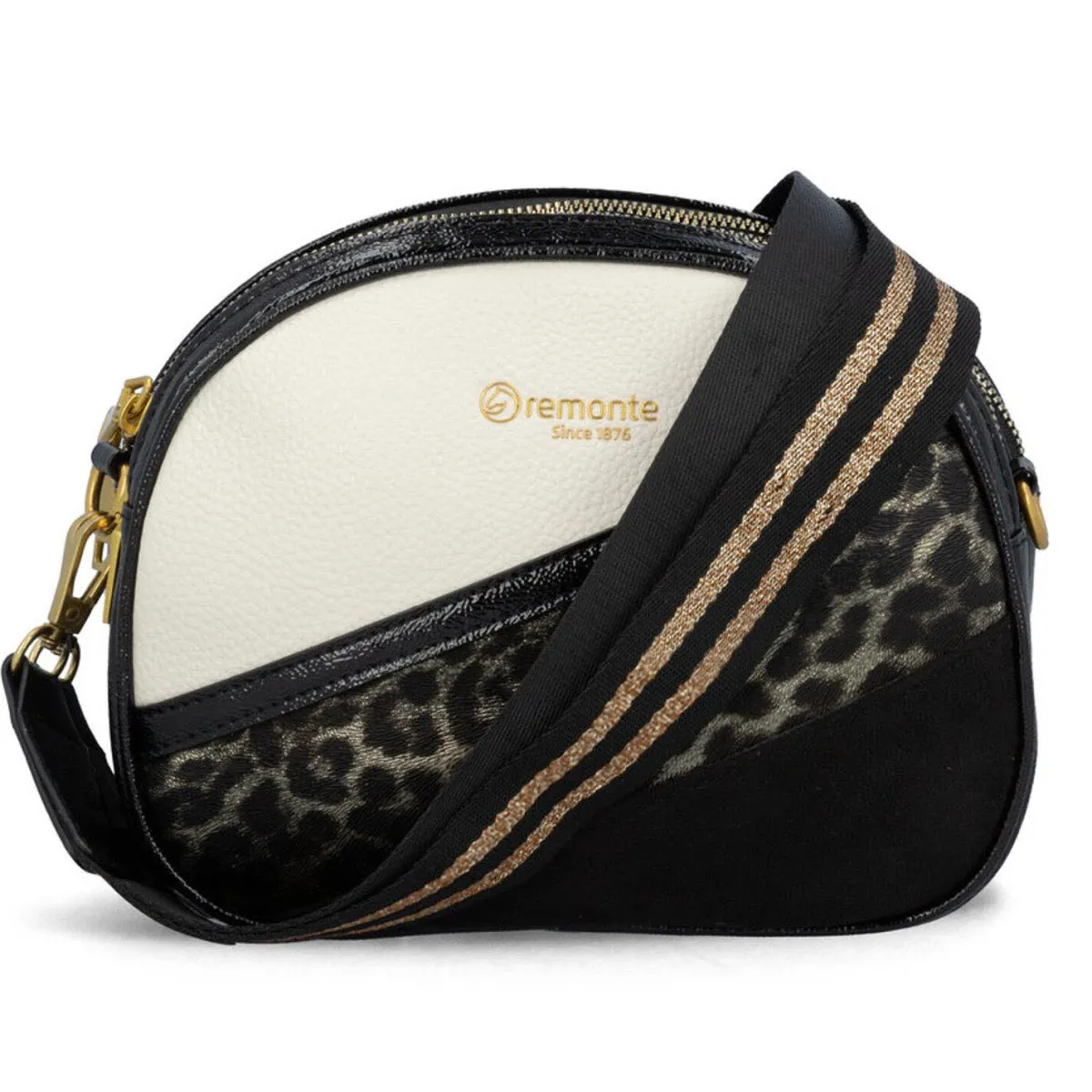 Das Obermaterial wurde aus pflegeleichtem Kunstleder in Schwarz und Weiß gefertigt und ist mit einer Overlaystruktur und einem in Gold schimmernden Part mit Leomuster versehen.