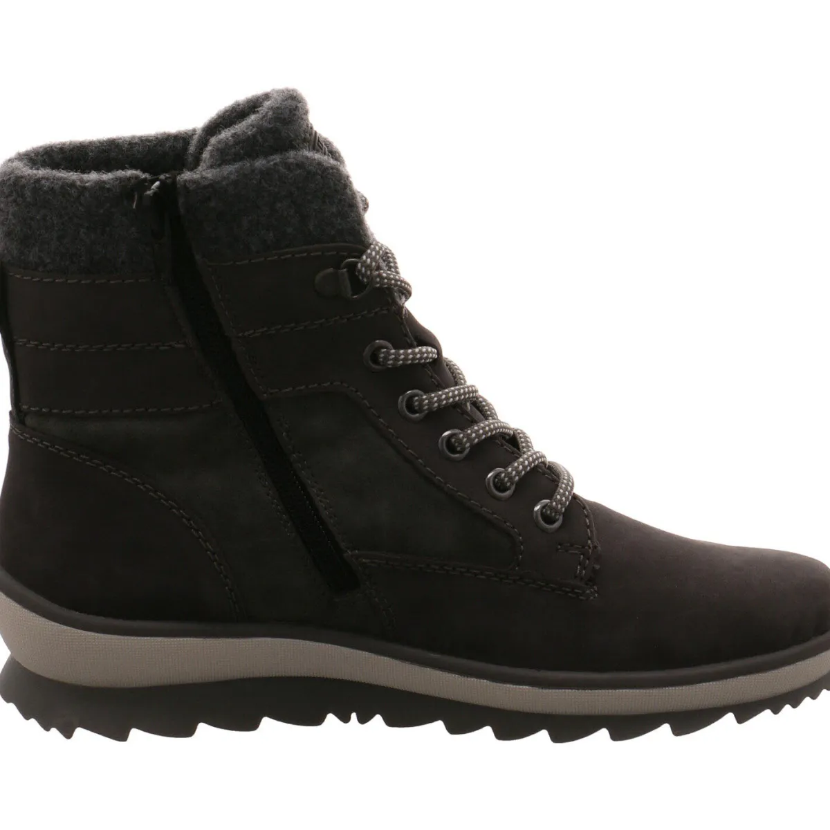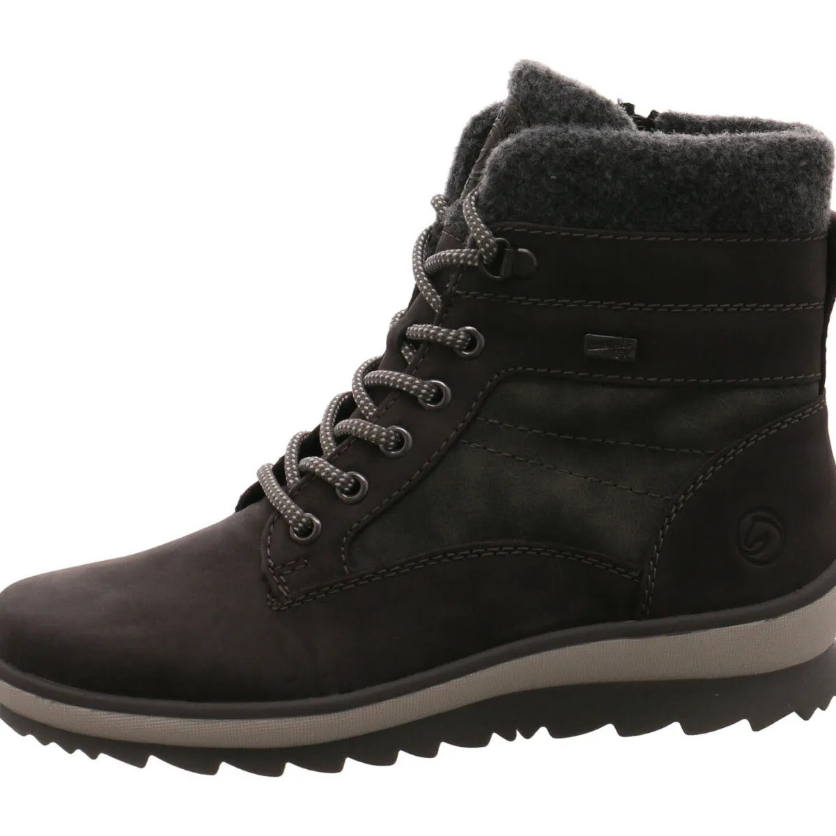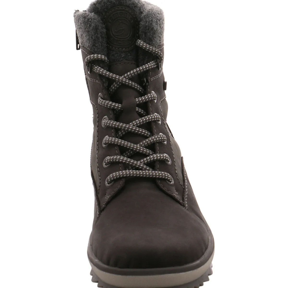 Die Remonte Tex Mebran macht den Schuh außerdem wasserabweisend und atmungsaktiv. Damit die Membran auch wirklich für trockene Füße sorgt, achten Sie bitte auf die richtige Auswahl der Socken. Diese sollten nicht aus reiner Baumwolle bestehen. Beim Tragen reiner Baumwollsocken können Sie trotzdem nasse Füße bekommen, allerdings nicht vom Regen oder Schnee, sondern vom Tropenklima in den Schuhen.