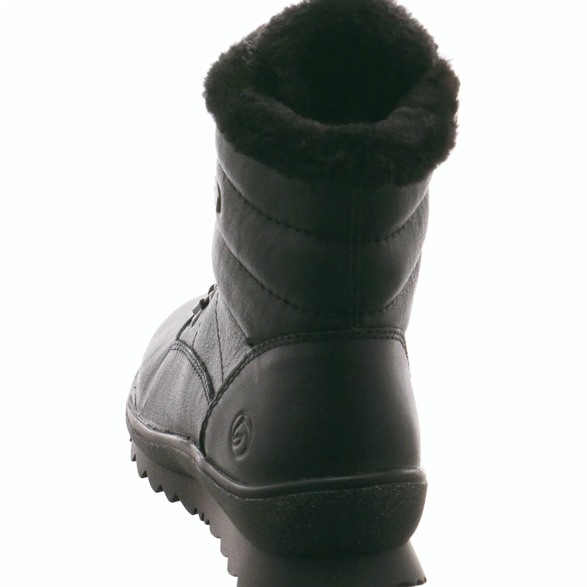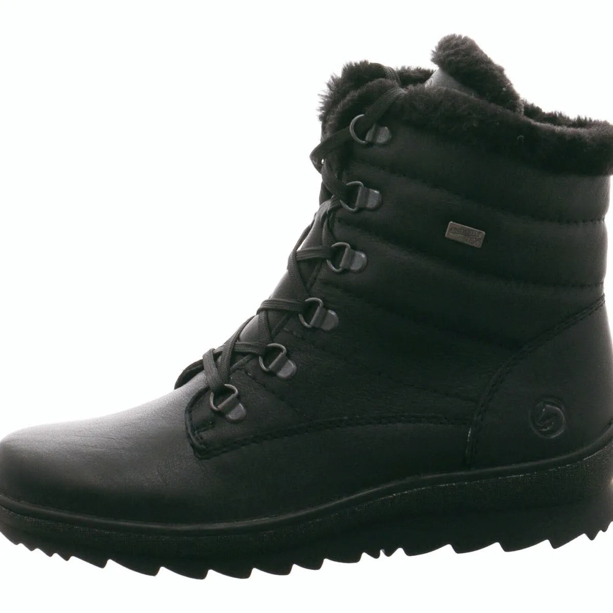 Die sportive Laufsohle ist extra leicht und flexibel. Sie sorgt damit für einen hohen Komfort beim Gehen sowie für eine gute Bodenhaftung. Außerdem macht die Remonte Tex Membran den Winter Stiefel wasserabweisend und winddicht bei gleichzeitiger Atmungsaktivität. Damit die Membran auch wirklich für trockene Füße sorgt, achte bitte auf die richtige Auswahl der Socken, diese sollten nicht aus reiner Baumwolle bestehen. Beim Tragen reiner Baumwollsocken kannst du nämlich trotzdem nasse Füße bekommen, allerdings nicht vom Regen oder Schnee sondern vom Tropenklima in den Schuhen. Die Innensohle ist zudem als Wechselfußbett gearbeitet.