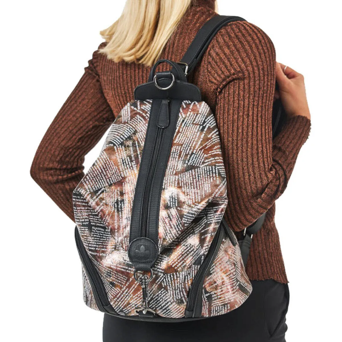 Das Obermaterial wurde aus pflegeleichtem Kunstleder in Schwarz gefertigt und ist mit einem auffälligen Allover Muster in Bronze und Gold Metallic versehen.