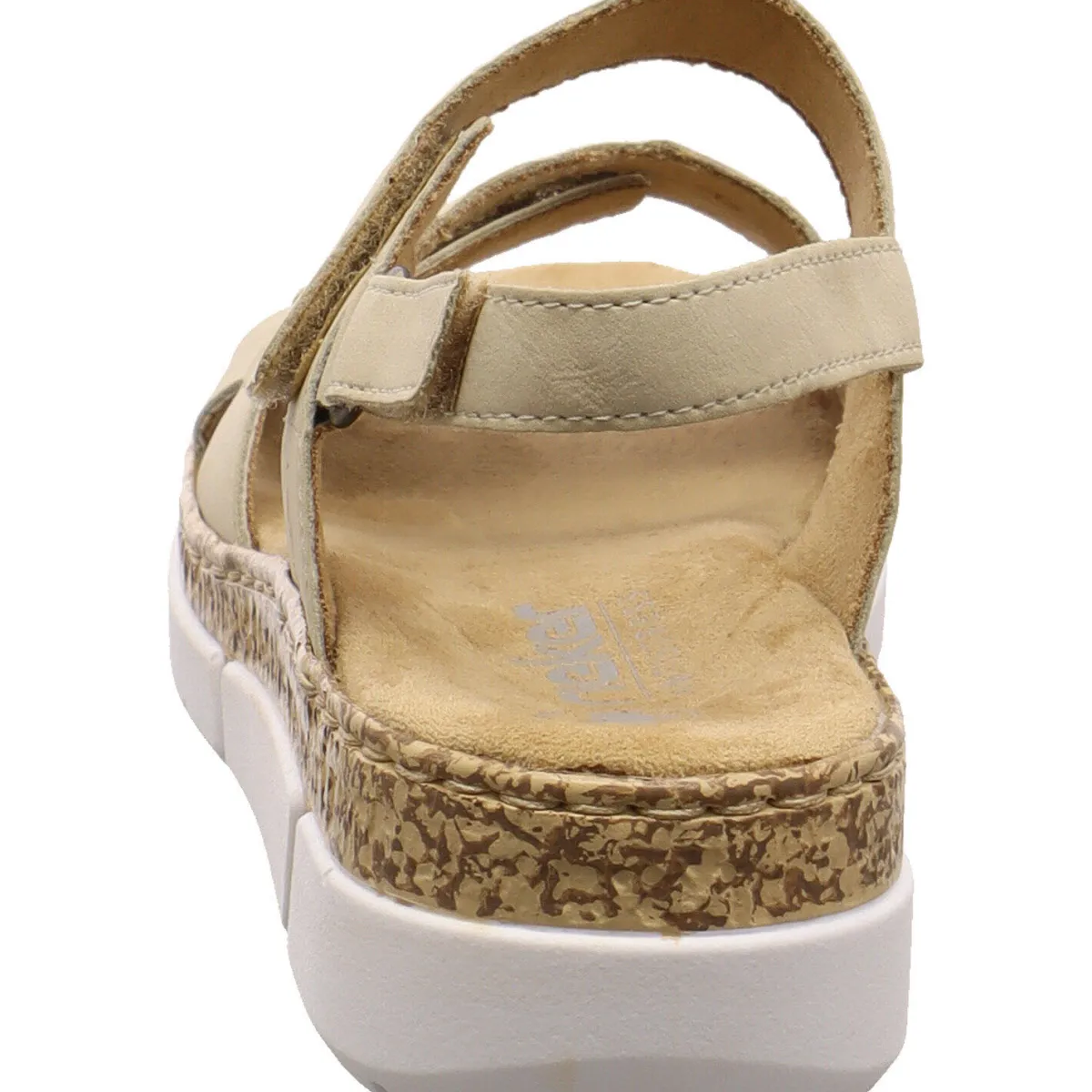 Das pflegeleichte Obermaterial aus authentisch genarbtem Kunstleder in Beige, wird durch die Stilvoll gesetzten Riemen gekonnt in Szene gesetzt.