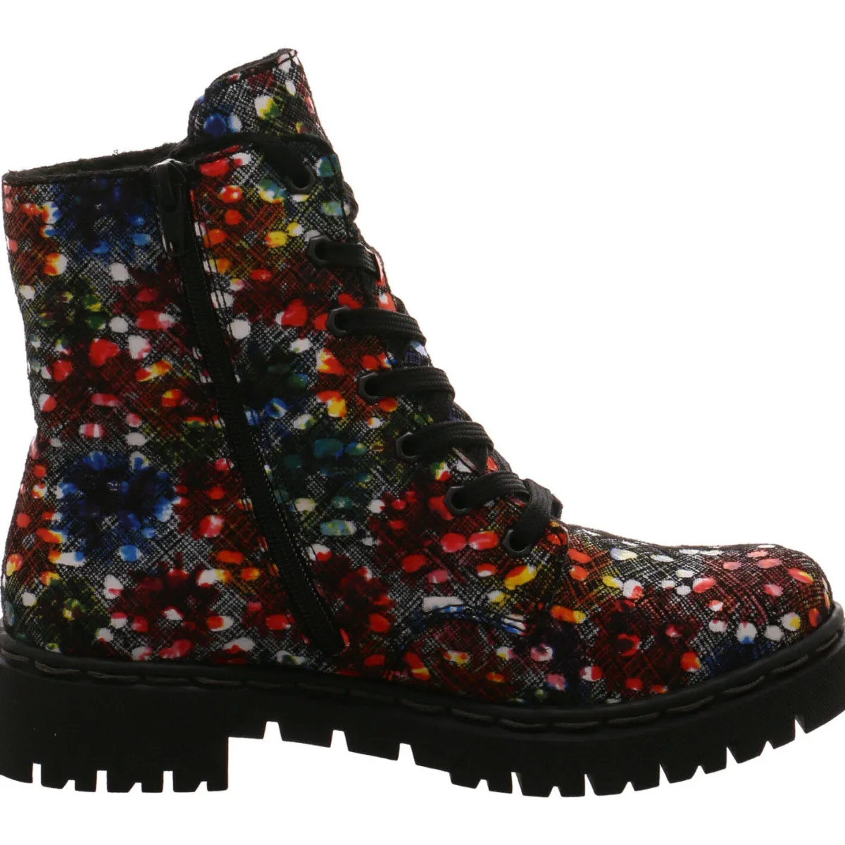 Gefertigt aus Kunstleder fällt er durch seinen äuffälligen Print in Bunt sofort ins Auge. Durch die Schnürung und den funktionalen Reißverschluss ist der Einstieg besonders einfach und er kann optimal an den Fuß angepasst werden.