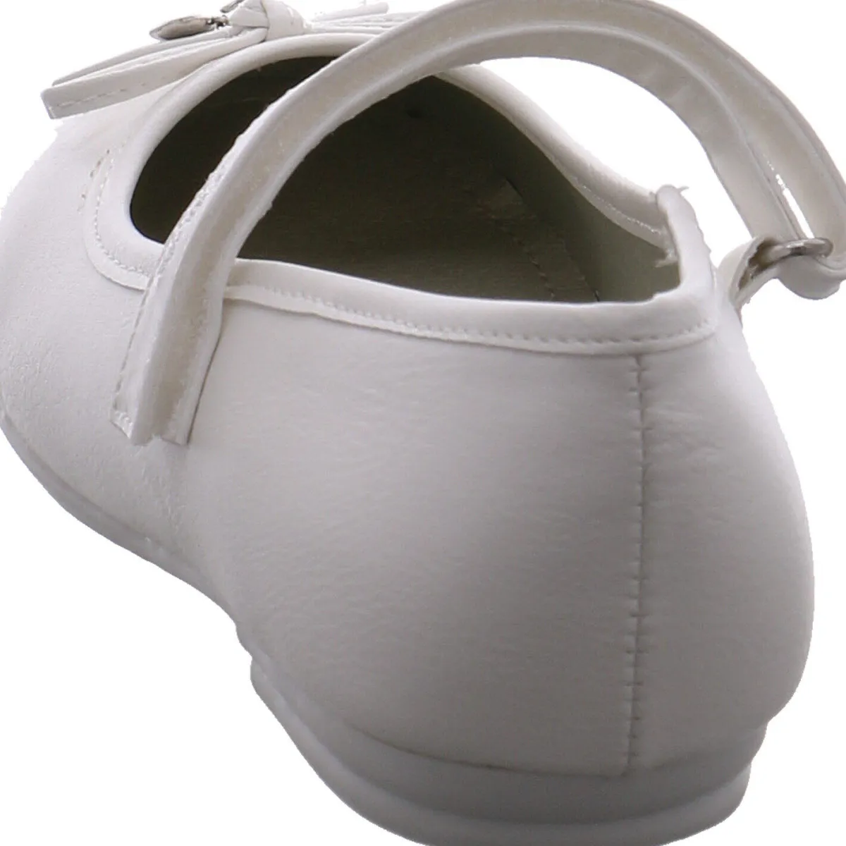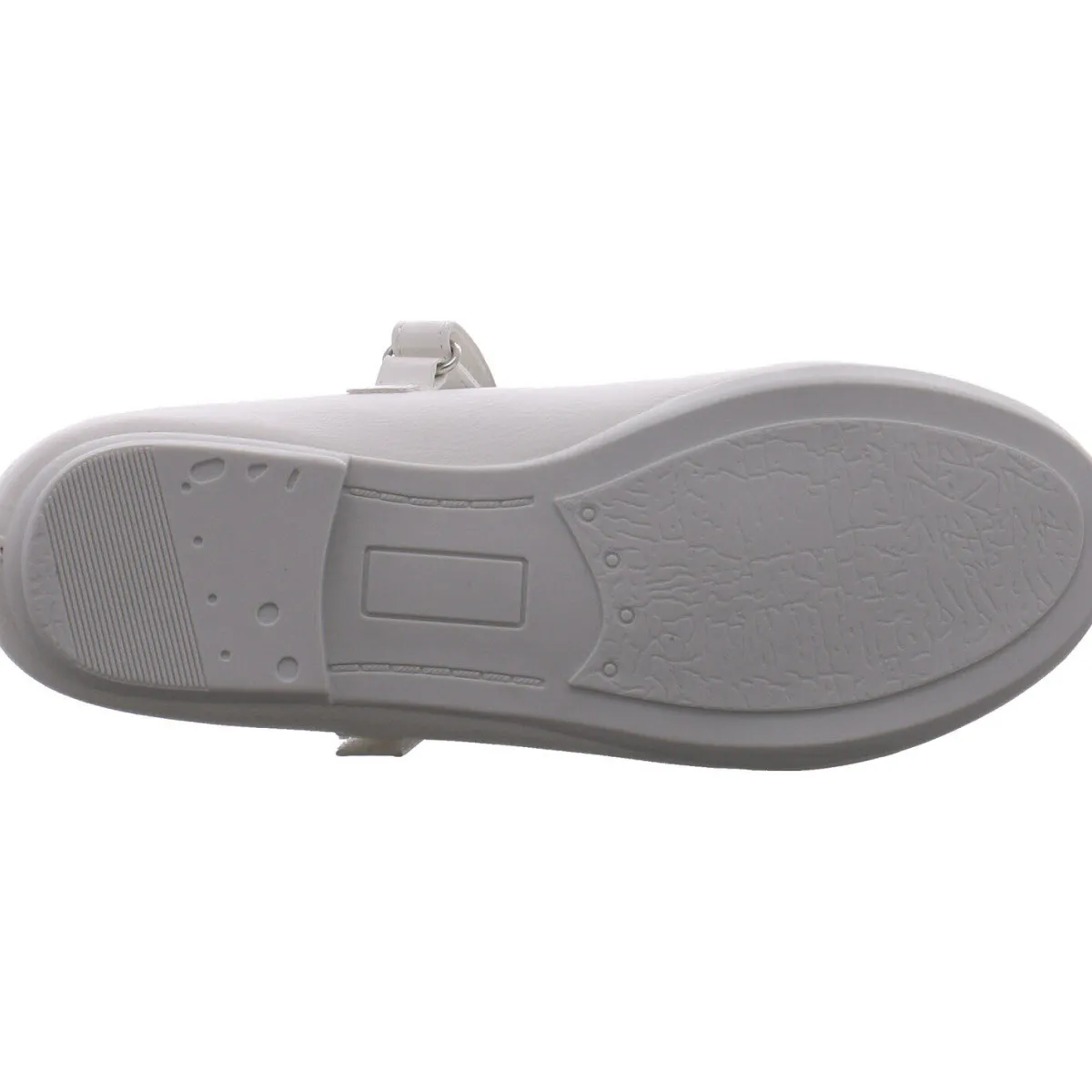 Das Obermaterial aus Kunstleder in Weiß begeistert durch sein elegantes Design. Die niedliche Schleife auf dem Blatt mit Herzanhänger in Silber rundet den Look perfekt ab.