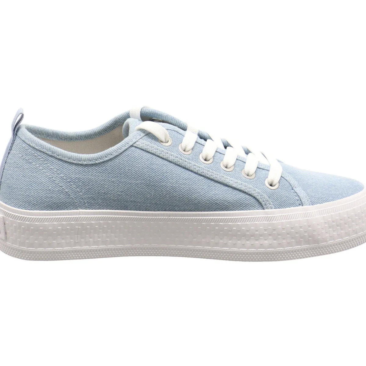 Das Obermaterial aus Textil in einem tollen Jeans Blau Ton ist schlicht, aber dennoch durch die Plateausohle ein Hingucker. Der kleine Textileinsatz an der Seite mit Markenaufschrift, rundet das Design gekonnt ab. Durch die Schnürung kann der angesagte Damen Sneaker optimal an den Fuß angepasst werden und das Textilband am Schaft hilft bei einem leichten Einstieg. Die Gummilaufsohle ist zudem rutschhemmend und bietet einen tollen Laufkomfort.