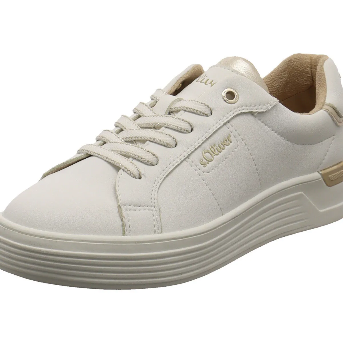 Das Obermaterial besteht aus pflegeleichtem Kunstleder in Weiß. Farbakzente in Gold machen den Schuh zu einem tollen Hingucker. Der Schaft ist angenehm gepolstert und mit der Schnürung kannst du die Passform optimieren. Die Innensohle ist angenehm gepolstert und als Wechselfußbett gearbeitet. Ein toller Sneaker im rundum gelungenen Design.