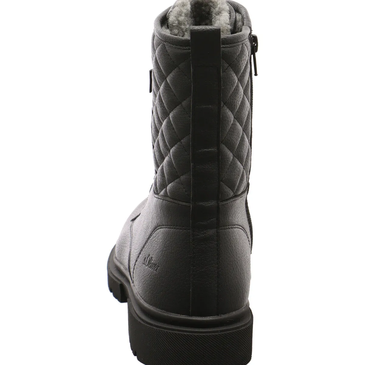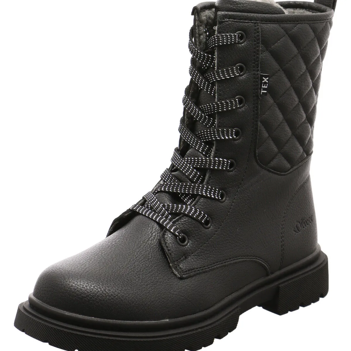 Gefertigt aus Kunstleder in Schwarz ist der Schaft mit einer schönen Prägung im Karo Muster versehen.