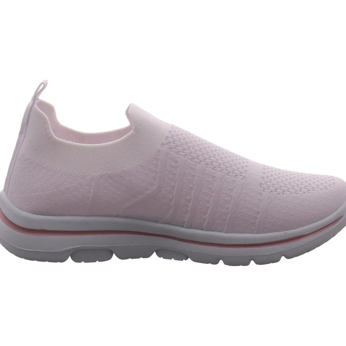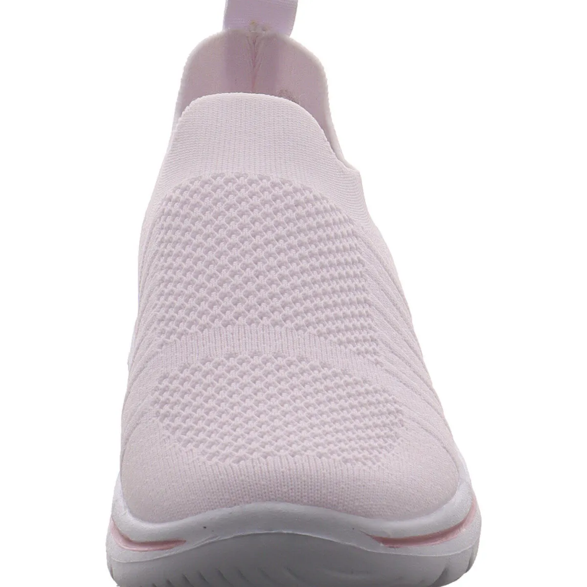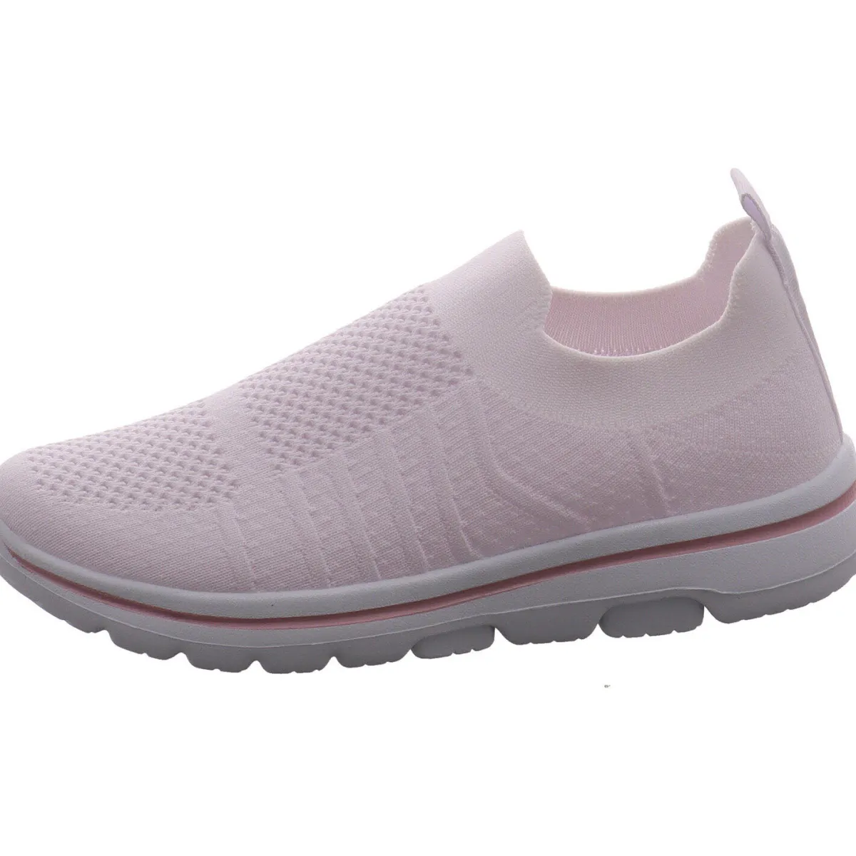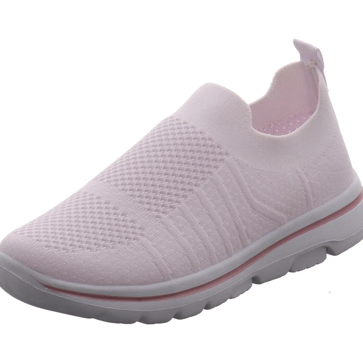 Das flexible Textil Obermaterial in Weiß, ist mit einer Strickoptik versehen und sorgt somit für eine gute Luftzirkulation. Der Einstieg ist wie ein Strumpfbund gearbeitet und bietet zusätzlichen Tragekomfort.