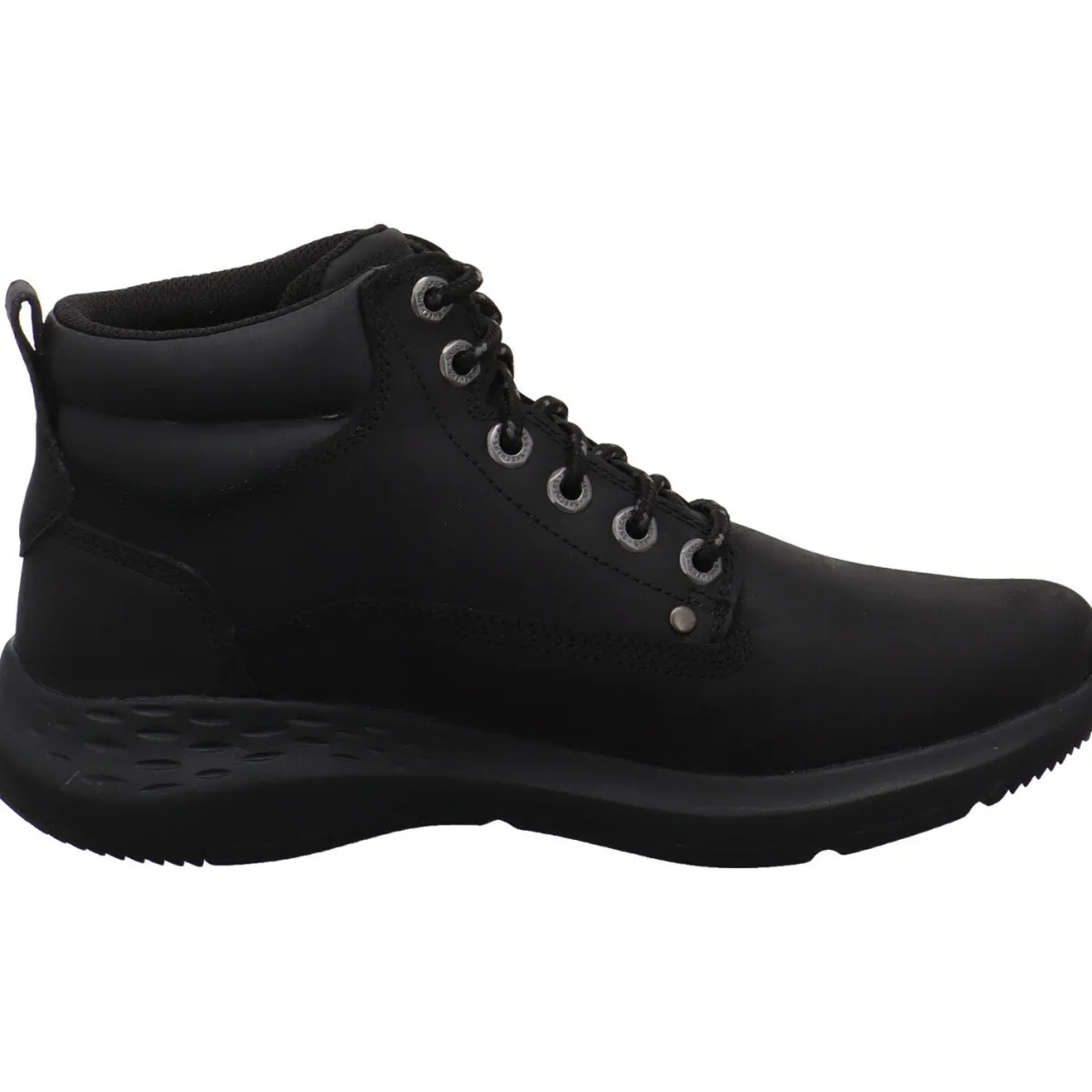 Gefertigt aus einem Mix aus Echtleder und Kunstleder in Schwarz, begeistert er uns durch seine komfortable Ausstattung. So sind der Schaft und die Zunge angenehm weich gepolstert. Dank der Schnürung und der Lasche am Schaft kommt man spielend in die Stiefelette.