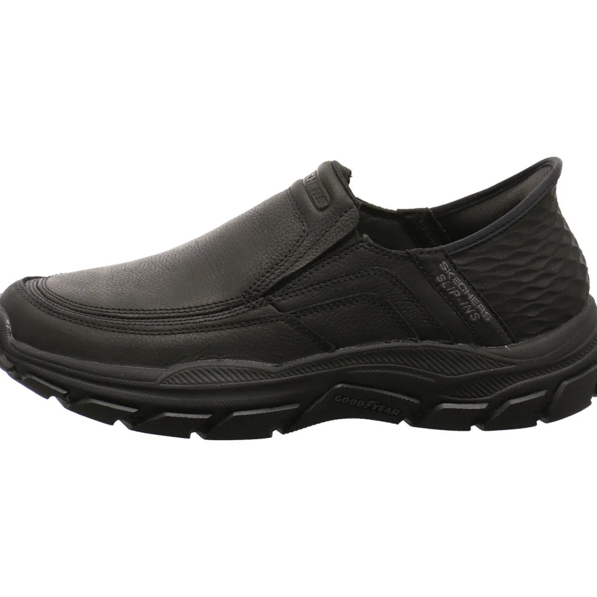 Er wurde aus einen gekonnten Mix aus Echtleder und Textil fertigt. Er gehört zur Hands Free Slip-ins Kollektion und besitzt ein geformtes Fersenteil mit Pillow, womit du ohne jegliche Hilfe einfach in den Schuh schlüpfen kannst. Der vordere Bereich ist klassisch aus Leder gearbeitet und mit zwei Dehngummis versehen, die den Einstieg zusätzlich erleichtern. Die Air Cooled Memory Foam Innensohle und die Gogamat Innenausstattung bieten zusätzlichen Komfort und ein ermüdungsfreies Gehen.