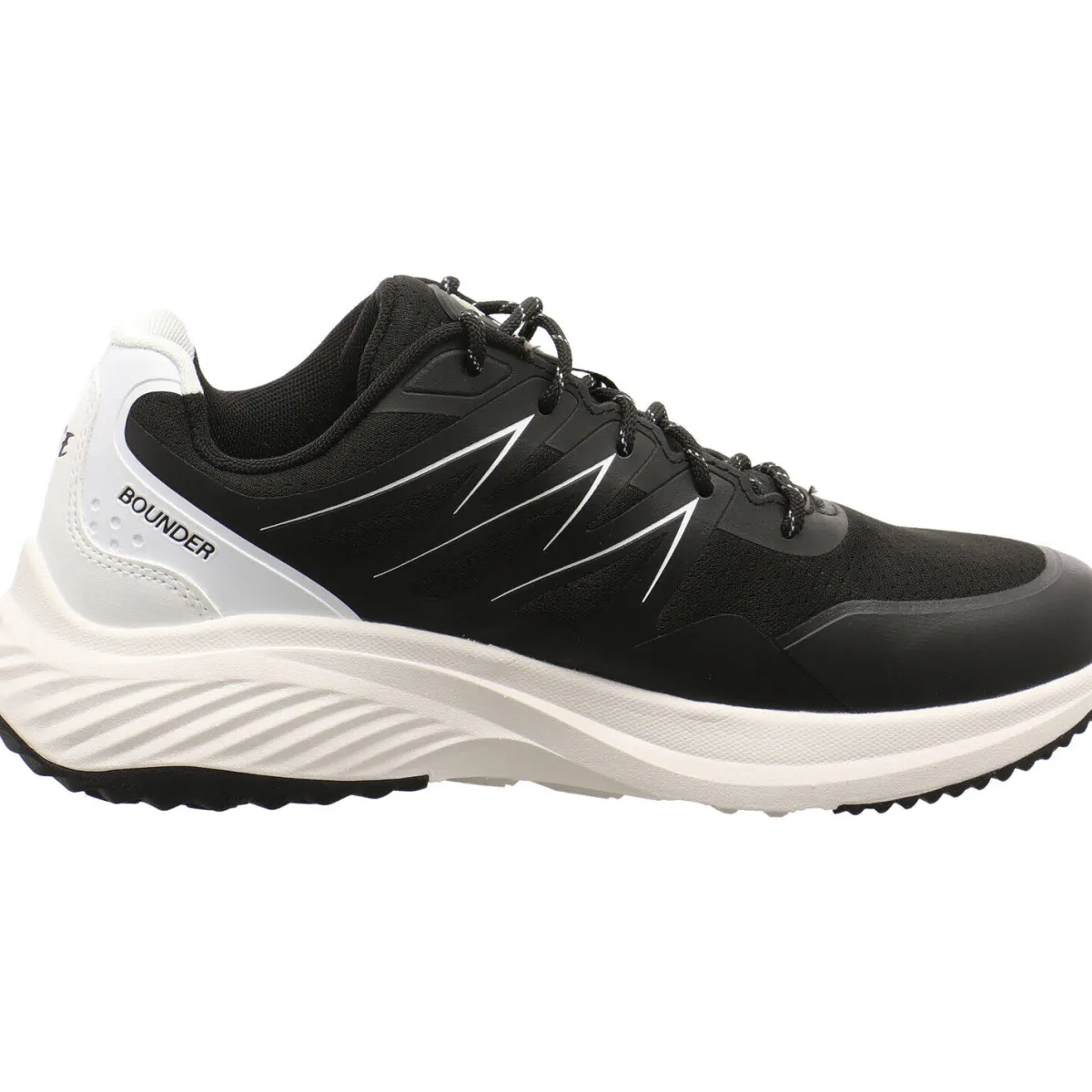 Mit der Schnürung kannst du die Passform optimieren. Auch hier ist die gepolsterte Skechers Air-Cooled Memory Foam Innensohle zu finden. Die flexible Gummilaufsohle ist Weiß abgesetzt und unterstreicht das modische Design.