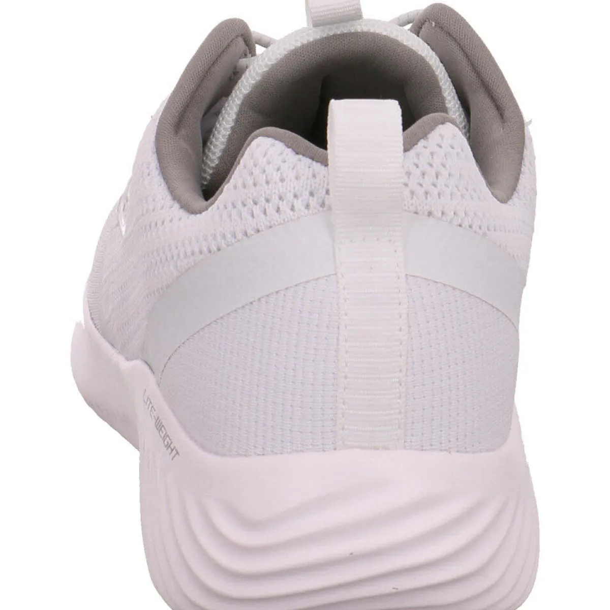Das Obermaterial aus gewebtem Strick Textil in Weiß lässt sich gut kombinieren und gibt dem Schuh einen trendigen Retro-Look.