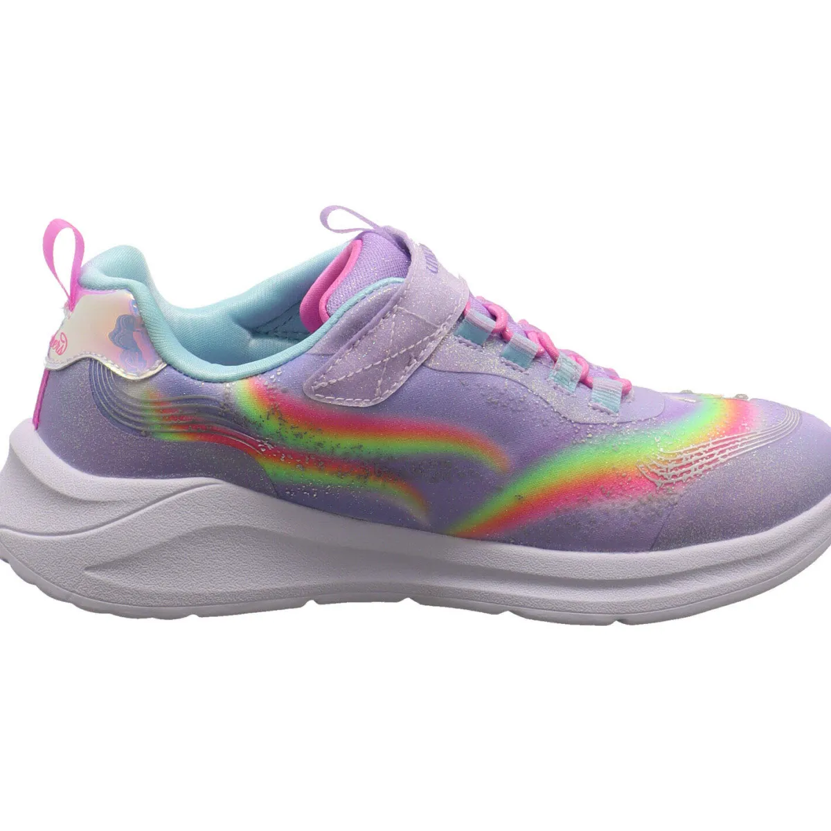 Er gehört zur magical collection Serie und hat Einhorn an der Seite. Das Obermaterial aus einem Mix aus Kunstleder und Textil in lila ist mit einem Regenbogen verziert. Ein toller Glitzer Schimmer passt perfekt zum Look und greift das Thema voll auf. Durch den Klettverschluss und die Gummischnürung ist der Einstieg kinderleicht und das Innenfutter in Blau ist super weich gepolstert. Als Besonderheit ist der Schuh mit einer Blinkfunktion ausgestattet. Diese kann nach Bedarf An- und Ausgeschaltet werden. Den Knopf findest du am Klettverschluss.