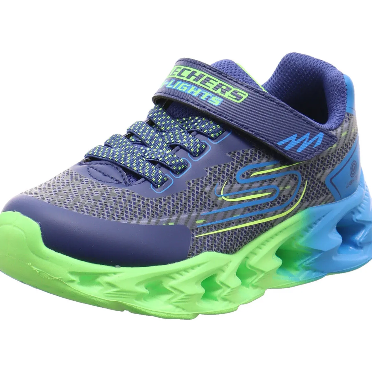 Gefertigt aus Synthetik in Blau, begeistert er uns durch die Farbakzente in Neon Grün. Und die tolle Gestaltung der Laufsohle und des Obermaterials. Schuhzunge und Schaftbereich sind angenehm gepolstert und tragen zu einem komfortablen Laufgefühl bei. Der Klettverschluss und die Gummischnürung sorgen für ein leichtes An- und Ausziehen. Auch dieses Modell ist mit einer cleveren Blinkfunktion ausgestattet. Diese kann durch einen Knopf an der Seite der Ferse nach Wunsch an- und ausgeschaltet werden. Und macht den Sneaker zu einem tollen Hingucker für den Kindergarten und die Schule.