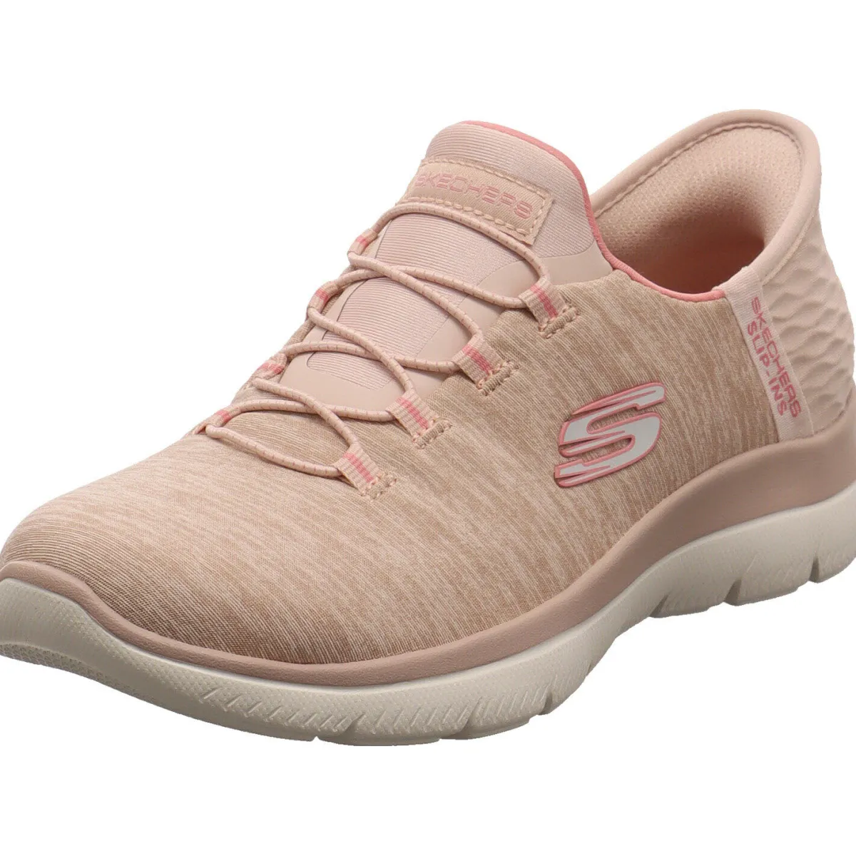 Der Sneaker wurde aus flexiblen Textil Meshgewebe in Rosa mit Highlights in Pink gefertigt. Typisch für diese Art von Schuh hat er eine verstärke Fersenkappe mit dem Heel Pillow, so kann man ohne jegliche Hilfe hineinschlüpfen.