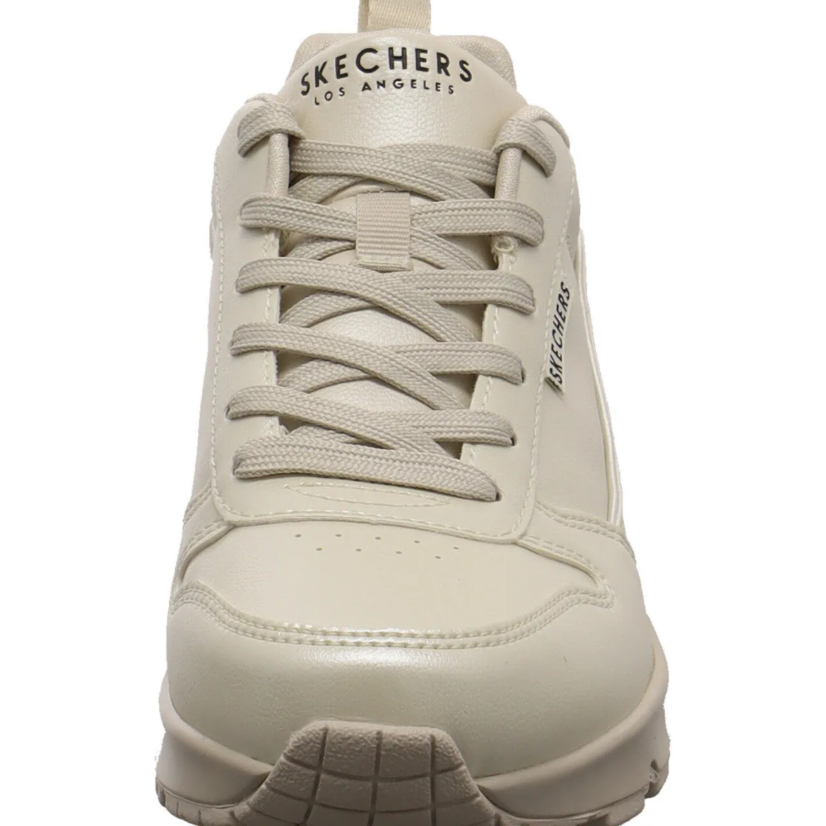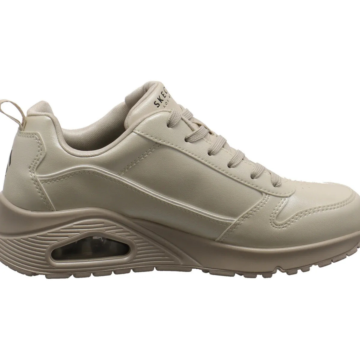 Mit der Schnürung kannst du ihn optimal an deinen Fuß anpassen, und durch die Lasche am Schaft kommst du leicht in den Sneaker. Der Schaft ist dabei angenehm gepolstert. Auch hier sind die Skechers Air-Cooled Memory Foam-Innensohle und eine sichtbare Skech-Air-Zwischensohle mit Luftkissenpolsterung verarbeitet.