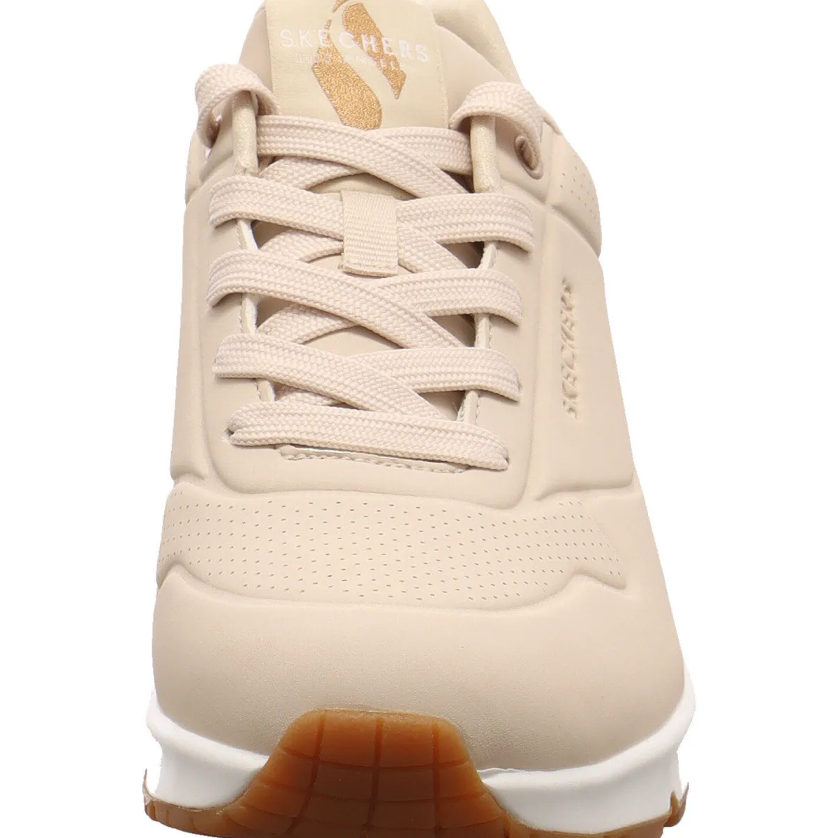 Das Obermaterial aus Kunstleder in Beige ist mit kleinen Lasercuts und Farbakzenten in Bronze versehen.