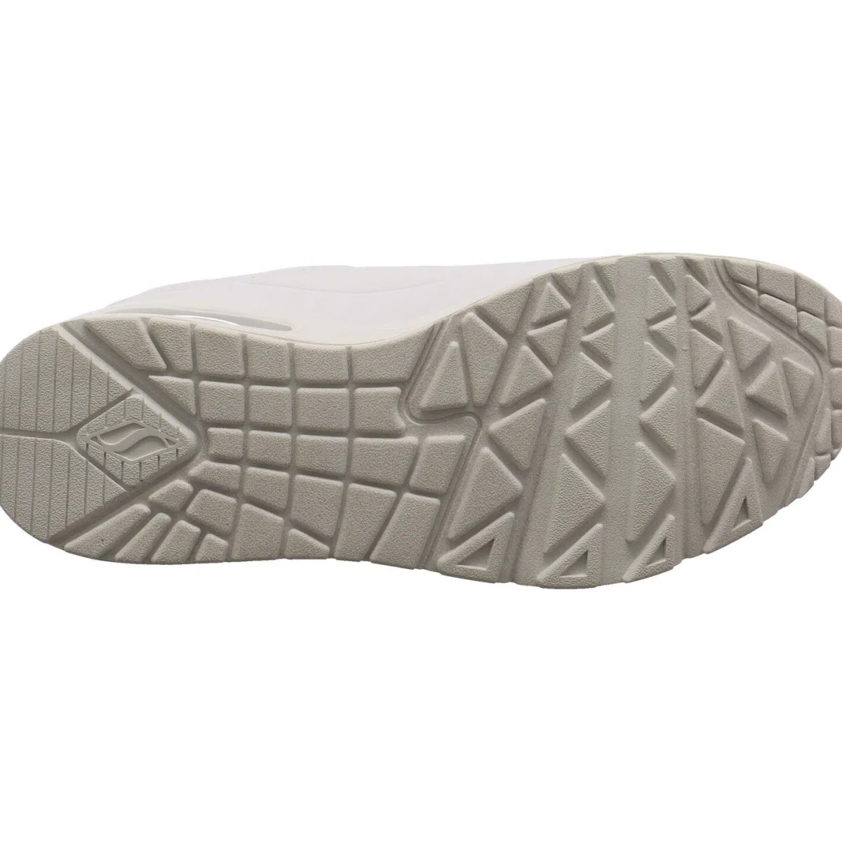 Der Schuh begeistert durch seinen cleanen Look, durch das Kunstleder in Weiß. Als Highlight, sind auf dem Blatt und seitlich vom Schaft kleine Lasercuts angebracht.