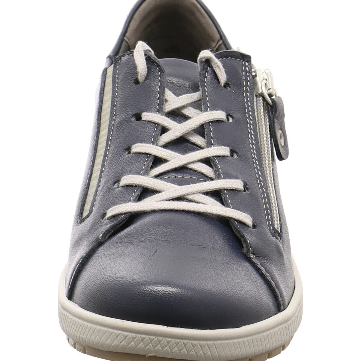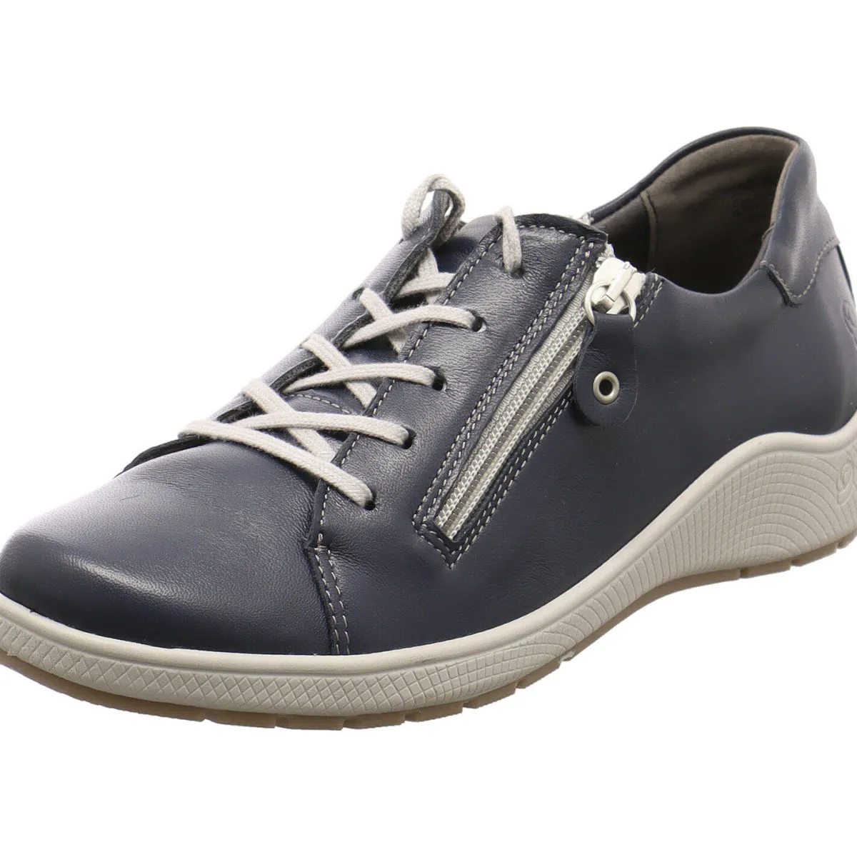 Er wurde aus hochwertigem Echtleder in Blau gefertigt. Durch den Reißverschluss auf der einen und dem Dehngummi auf der anderen Seite, ist der Einstieg ganz einfach und mit der Schnürung kannst du die Passform auf deine Bedürfnisse abstimmen. Die Innensohle ist wunderbar weich, flexibel und antibakteriell gearbeitet und du kannst sie waschen. Natürlich ist die Sohle auch hier als Wechselfußbett gearbeitet. So können eigene Einlagen verwendet werden.