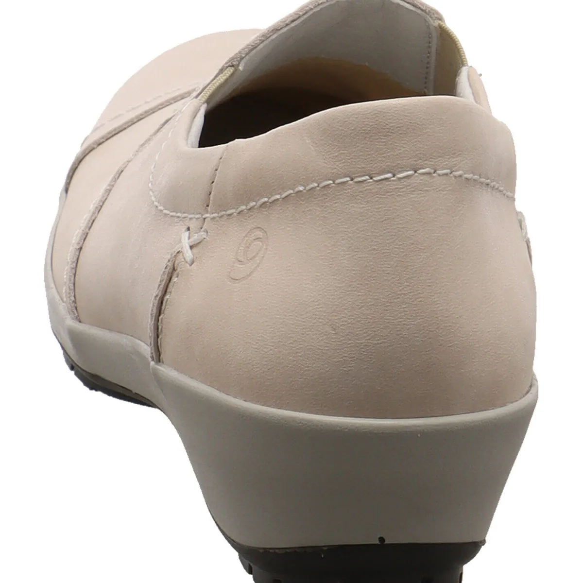 Das Obermaterial aus Echtleder in Beige ist mit gekonnt gesetzten Ziernähten versehen. Durch das schlichte Design passt dieser Schuh zu jedem Outfit.