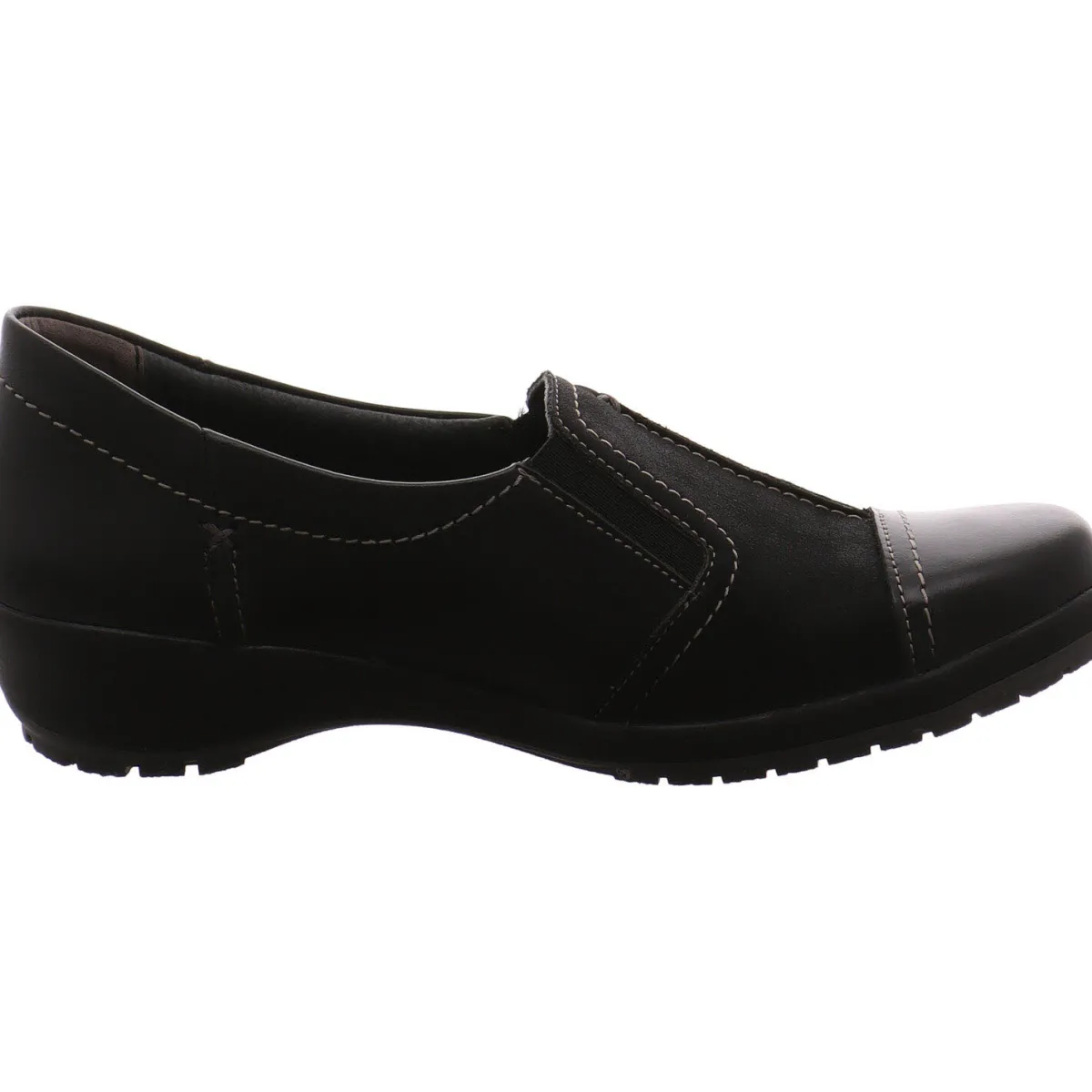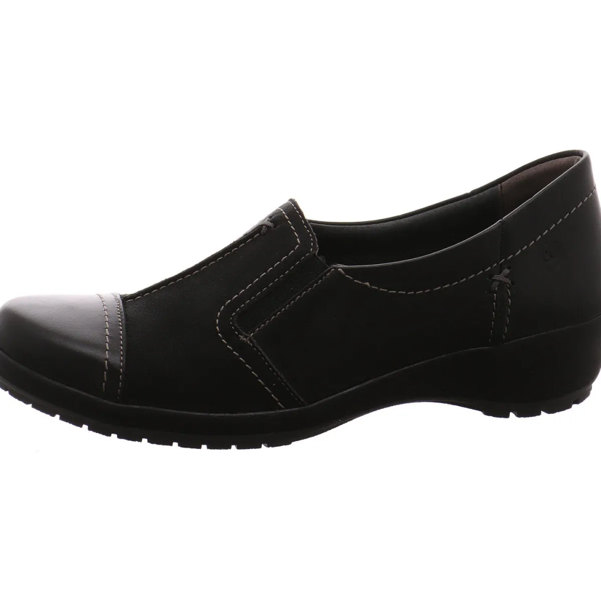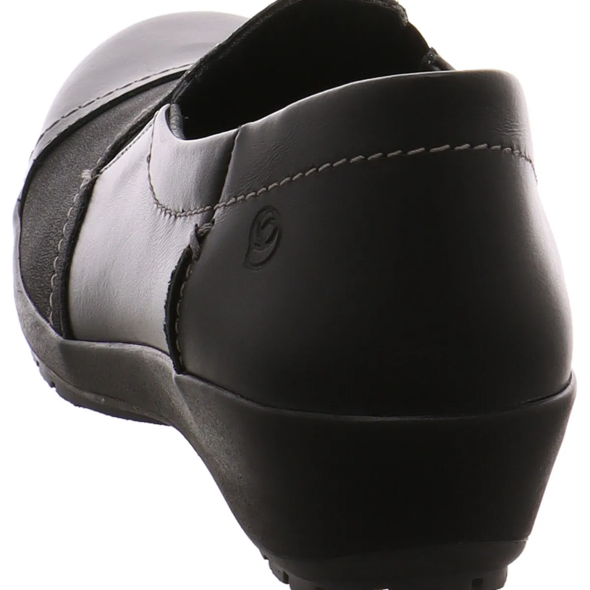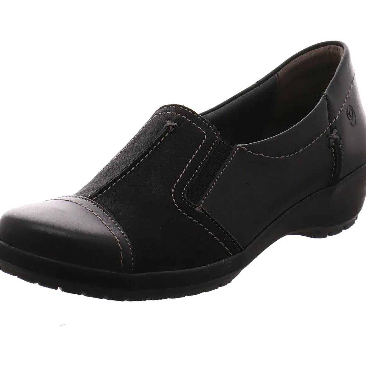 Der Keilabsatz und die leicht profilierte Synthetiklaufsohle runden das Gesamtkonzept ab.